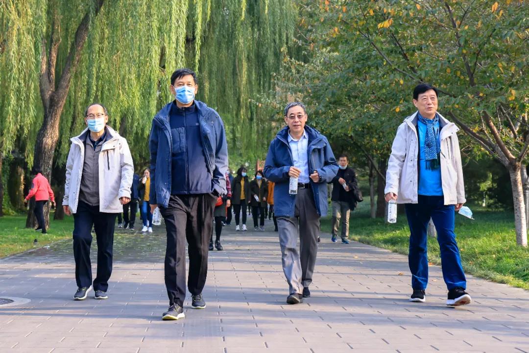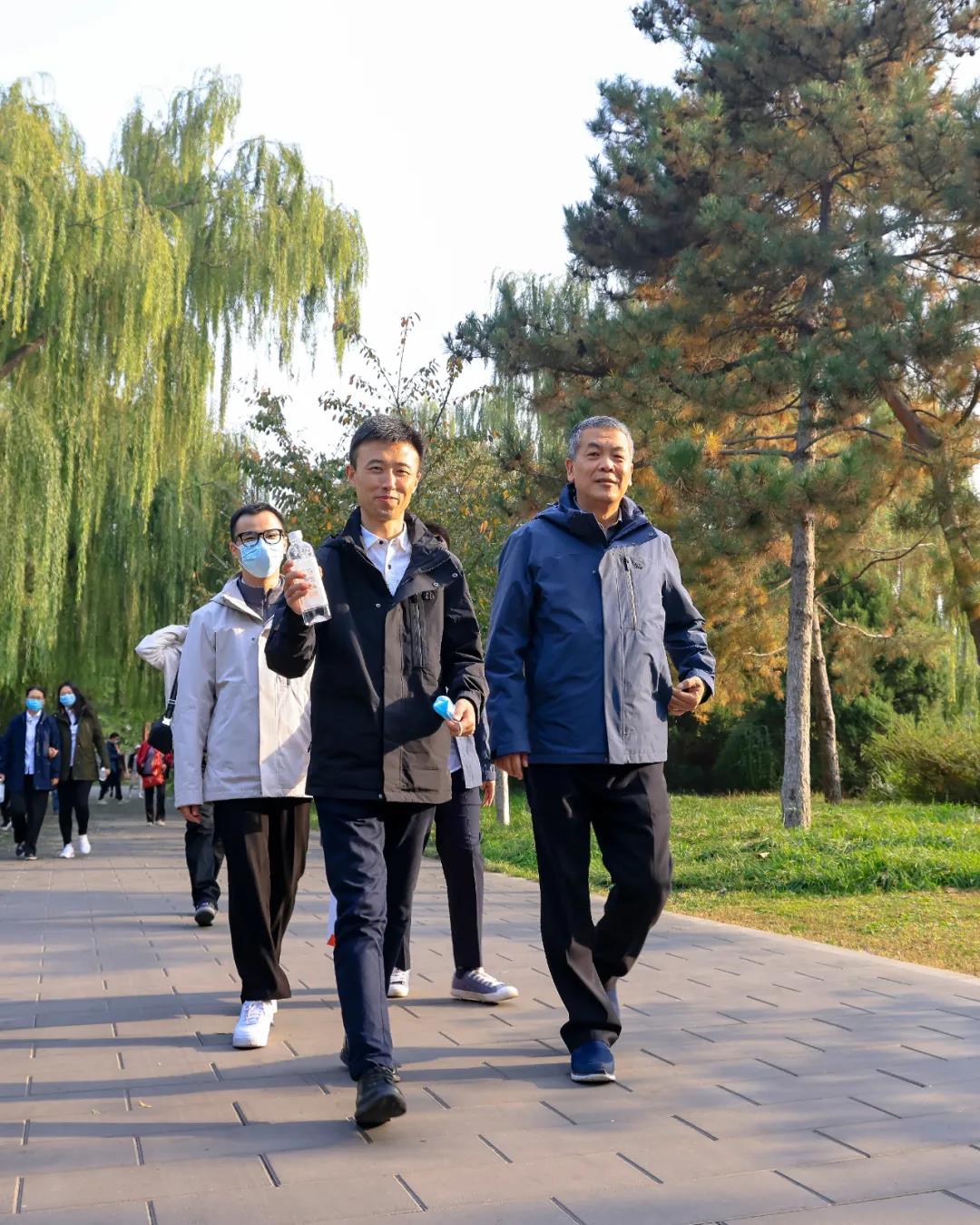 秋日的玉渊潭公园静谧宜人、色彩斑斓。大家三五成群,边交流工作生活心得,边尽情感受“湖光秋色两相和”的美景,在蜿蜒小路、林间栈道间彩叶花卉的别样景致中走完了5公里。
