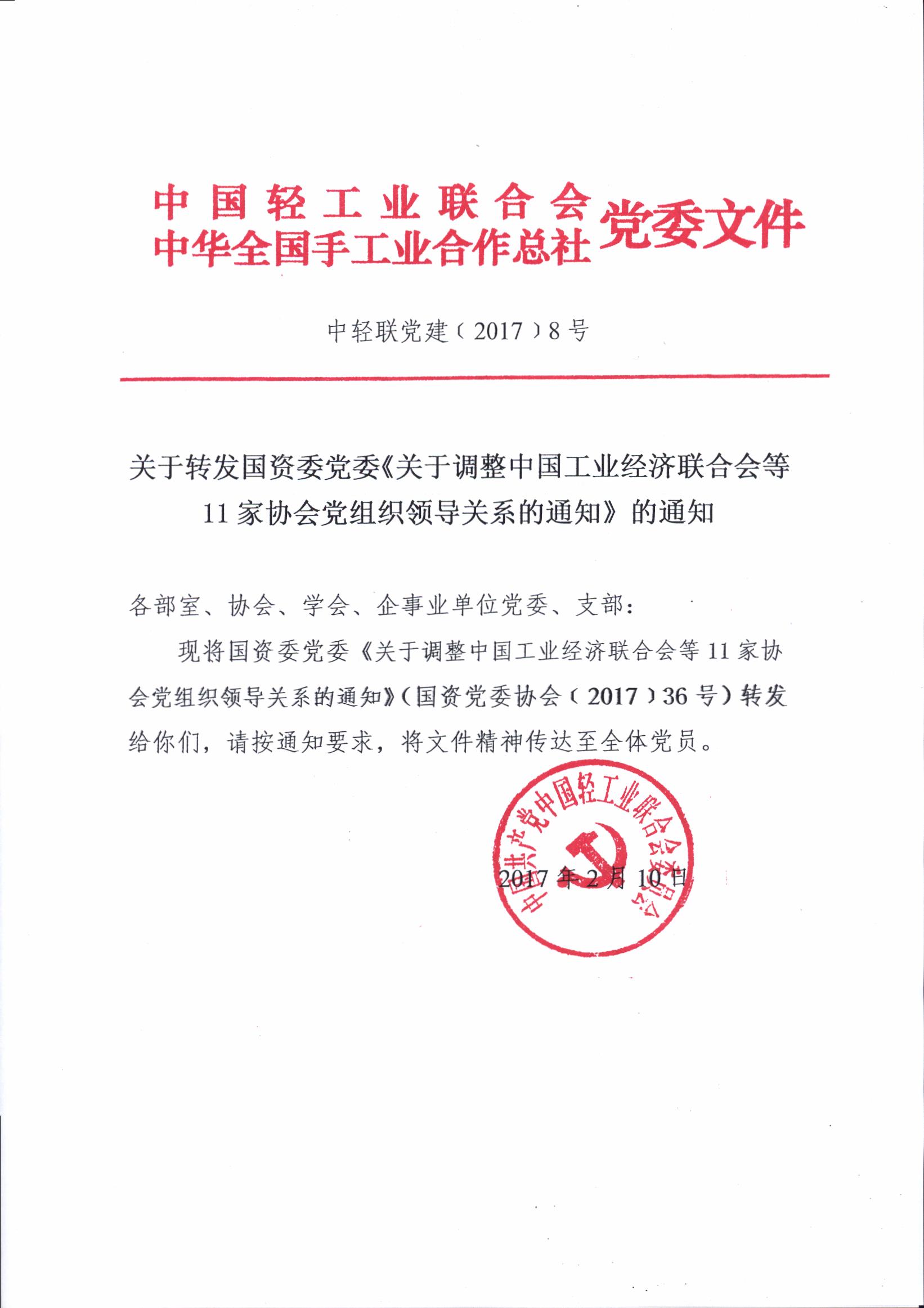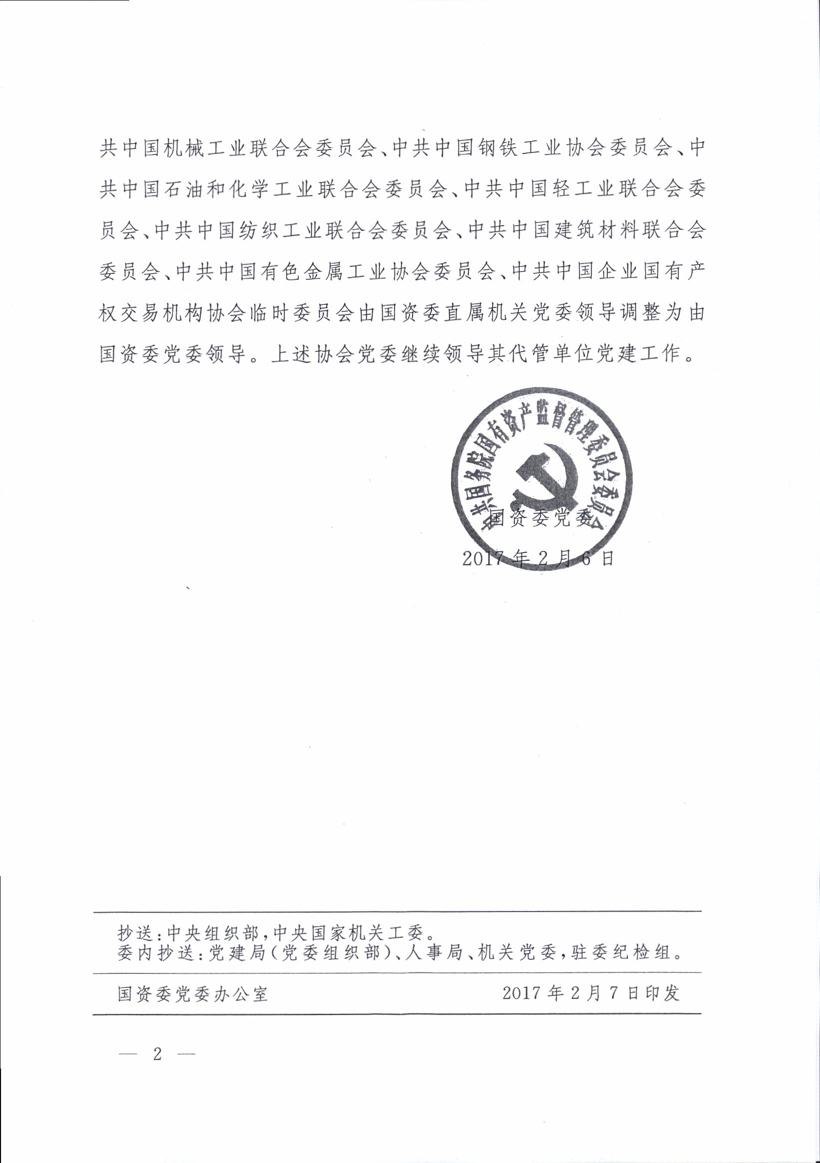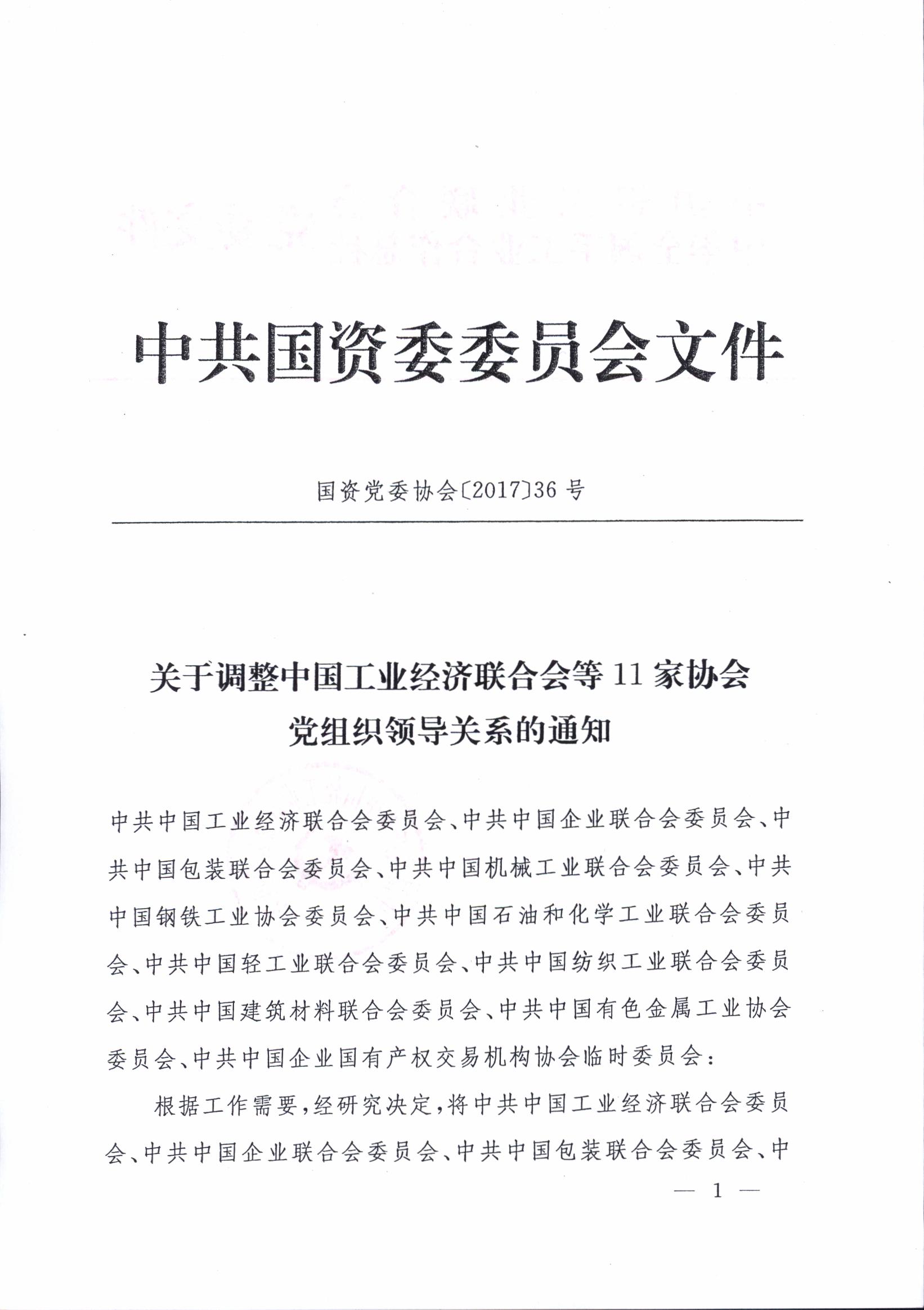 关于转发国资委党委《关于调整中国工业经济联合会等11家协会党组织领导关系的通知》的通知