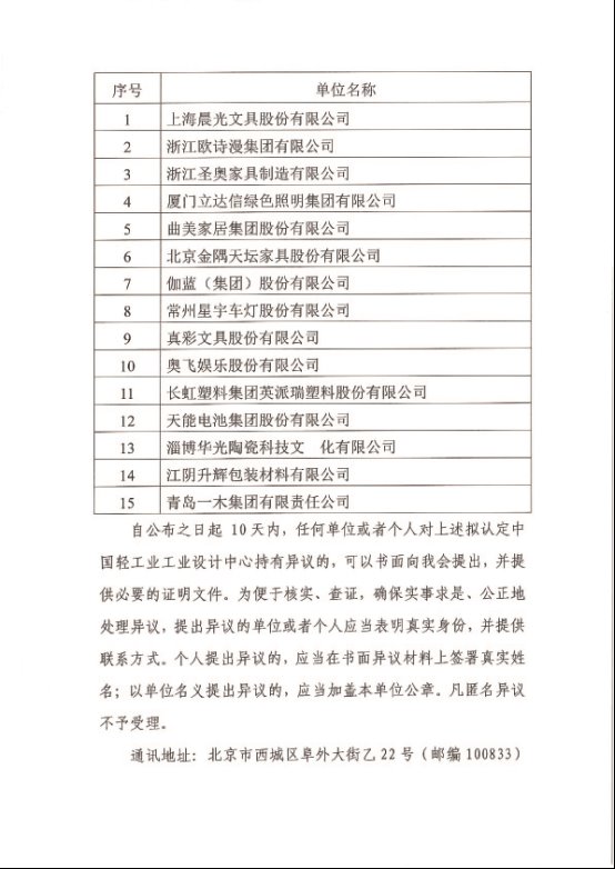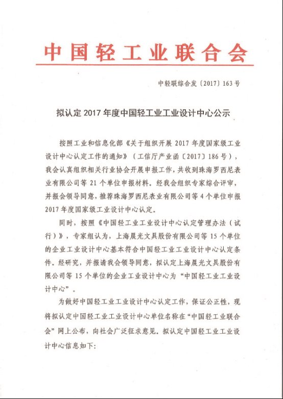 拟认定2017年度中国轻工业工业设计中心公示