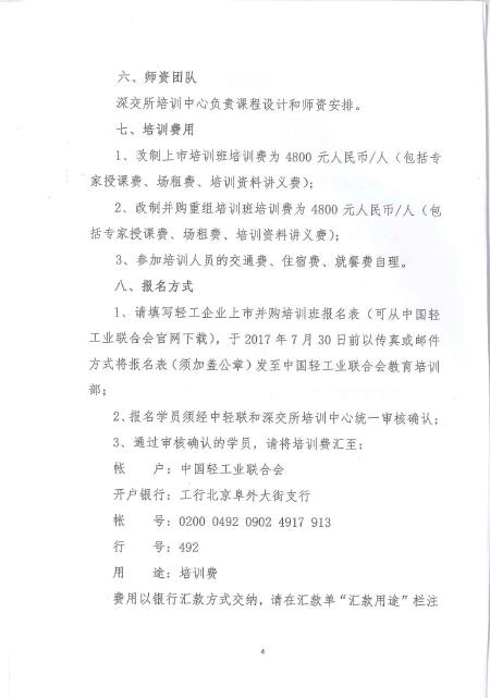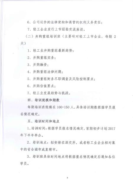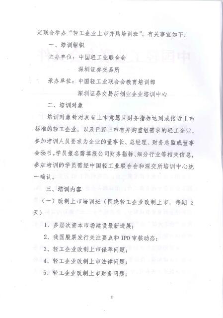 bv伟德国际体育1946与深圳证券交易所关于联合举办轻工企业上市并购培训班的通知