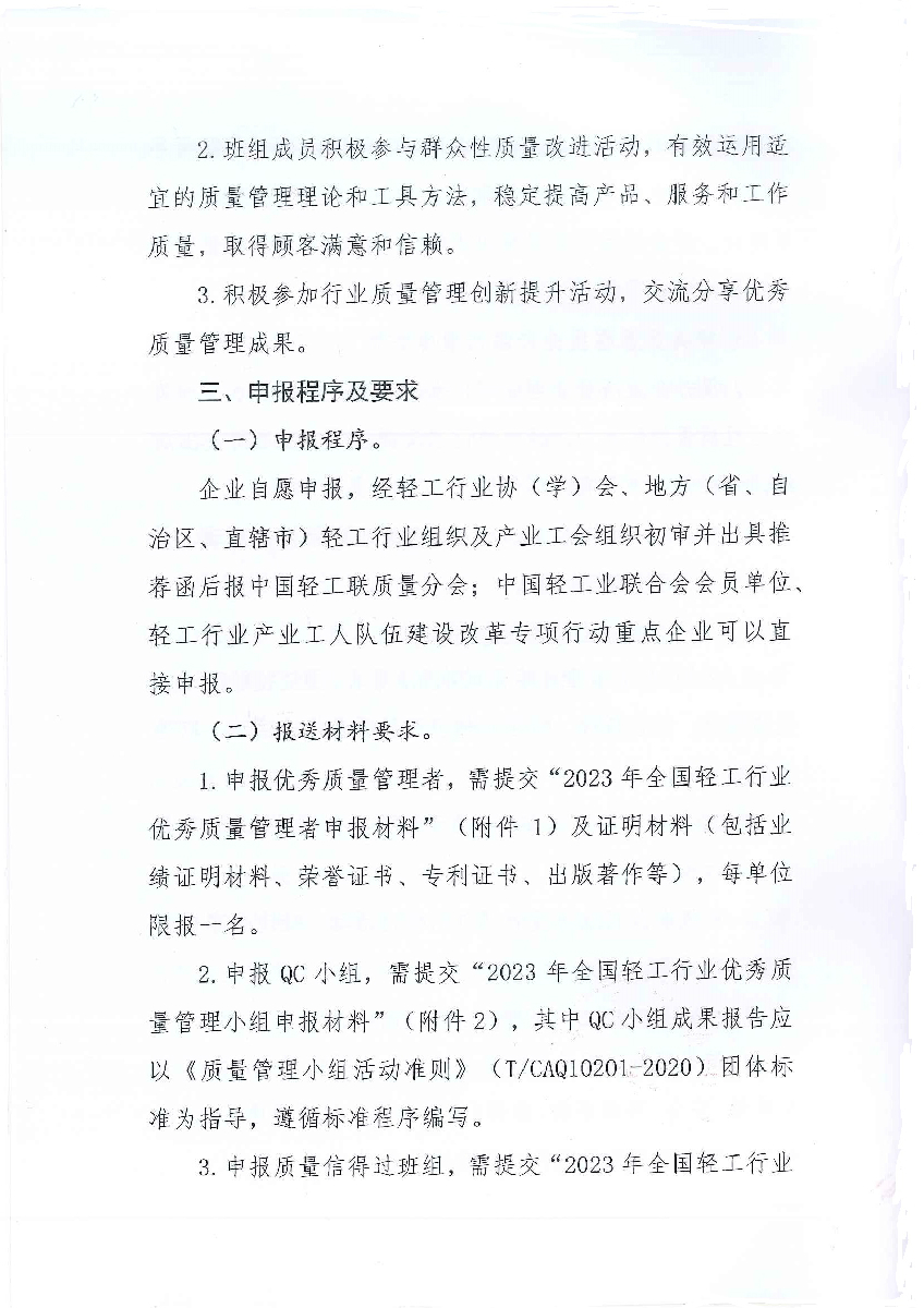 关于开展2023年度全国轻工行业质量管理创新提升活动的通知