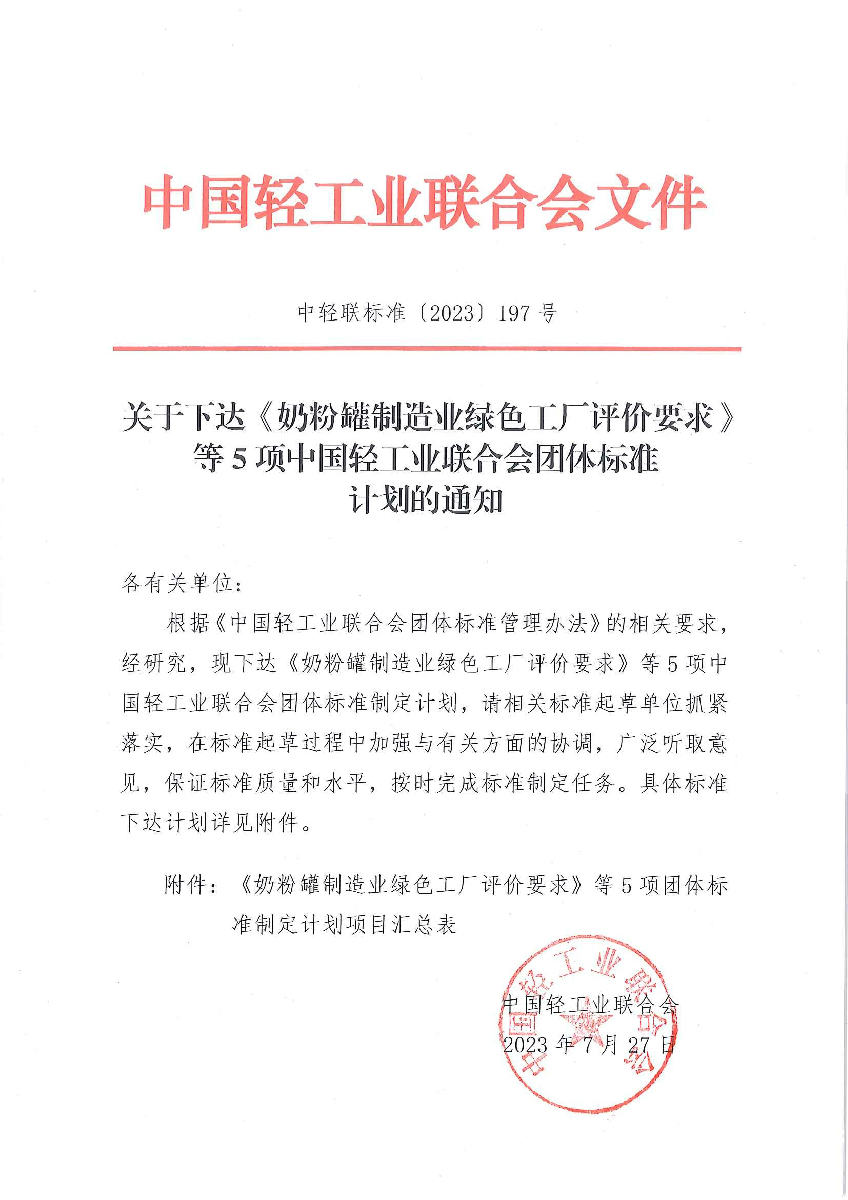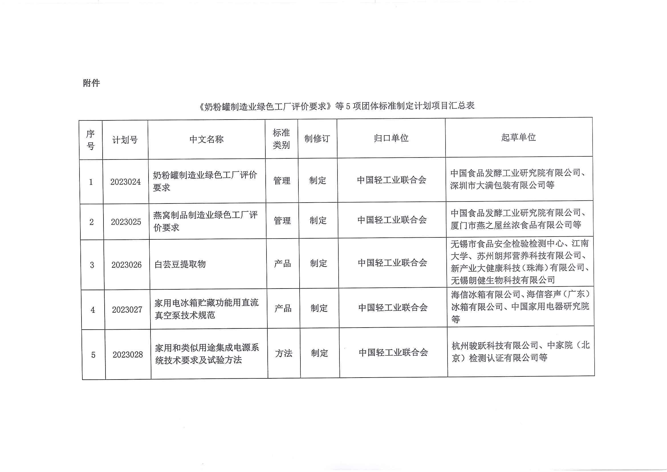 关于下达《奶粉罐制造业绿色工厂评价要求》等5项bv伟德国际体育1946团体标准计划的通知