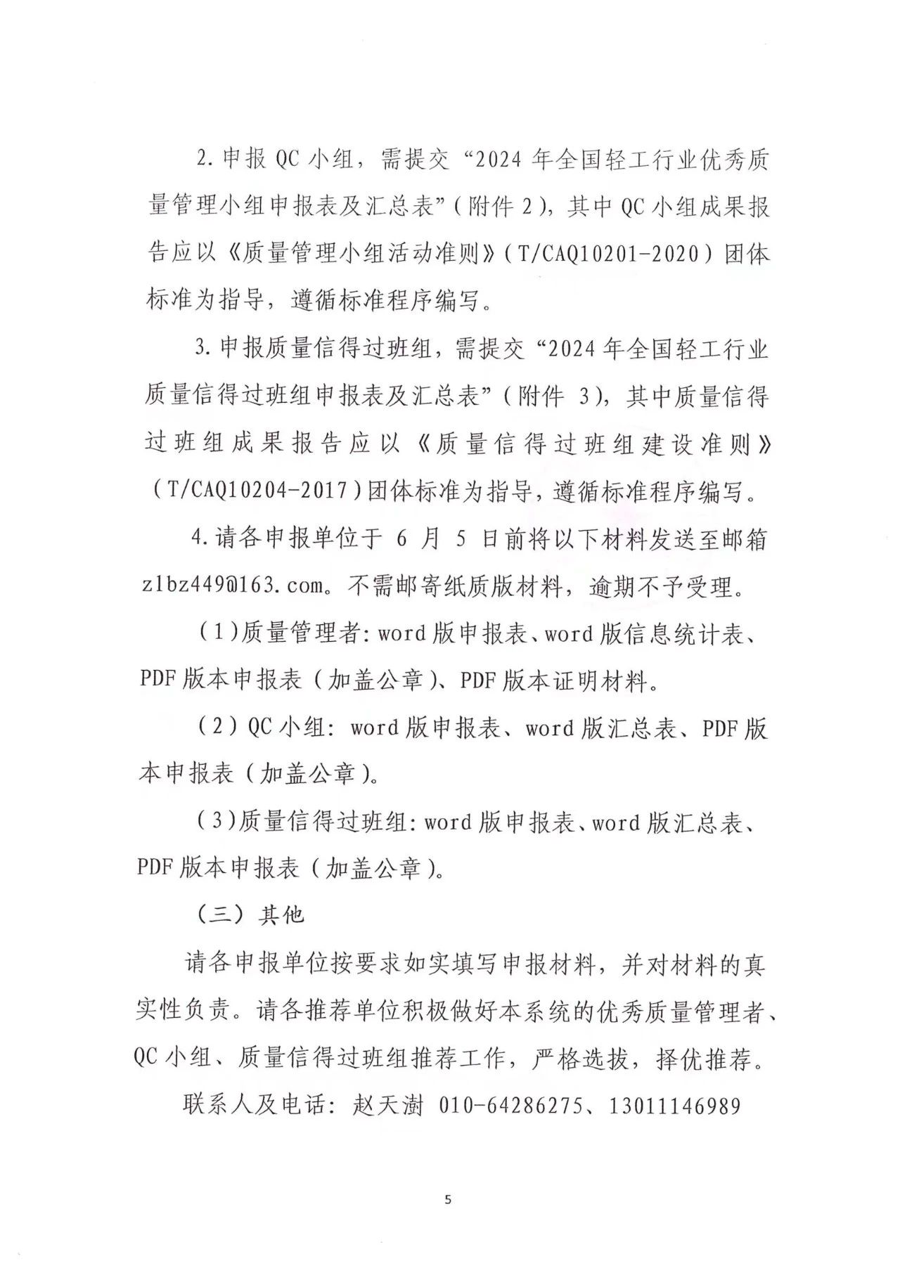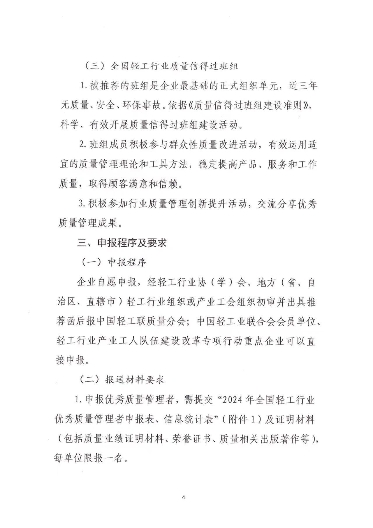 关于开展2024年度全国轻工行业质量管理创新提升活动的通知