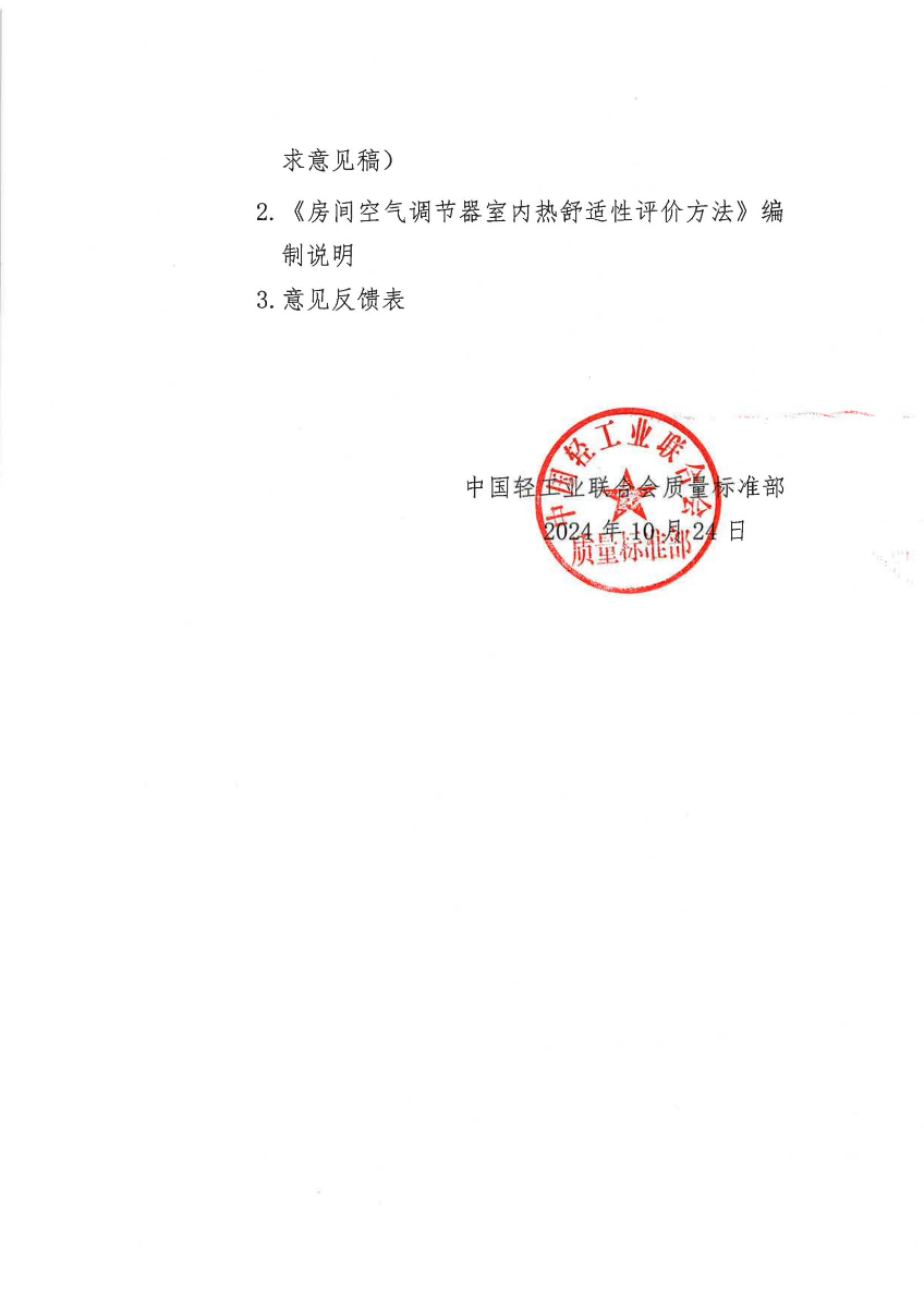 《房间空气调节器室内热舒适性评价方法》(征求意见稿)
