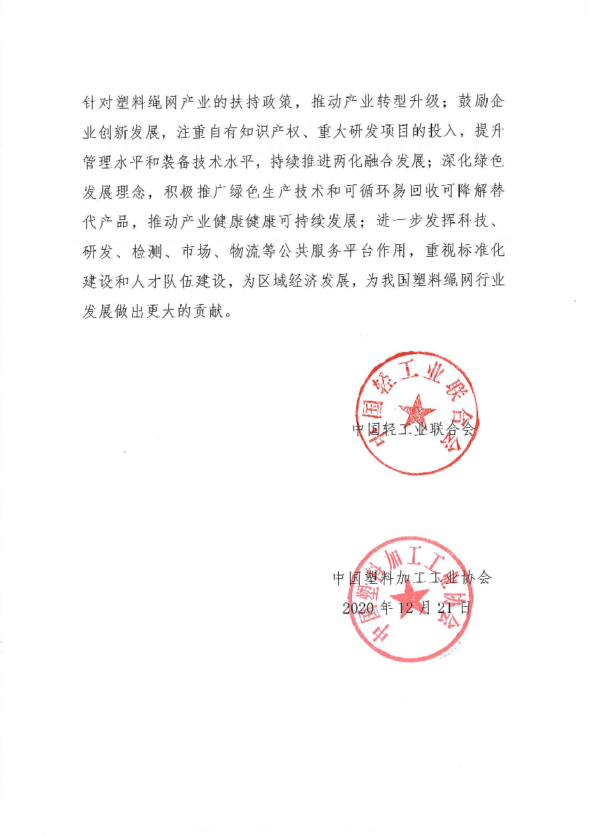 关于继续授予山东省惠民县“中国塑料绳网之都·惠民”称号的通知