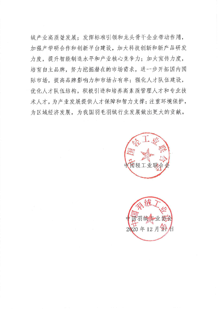 关于继续授予安徽省无为市“中国羽毛羽绒之乡·无为”称号的通知
