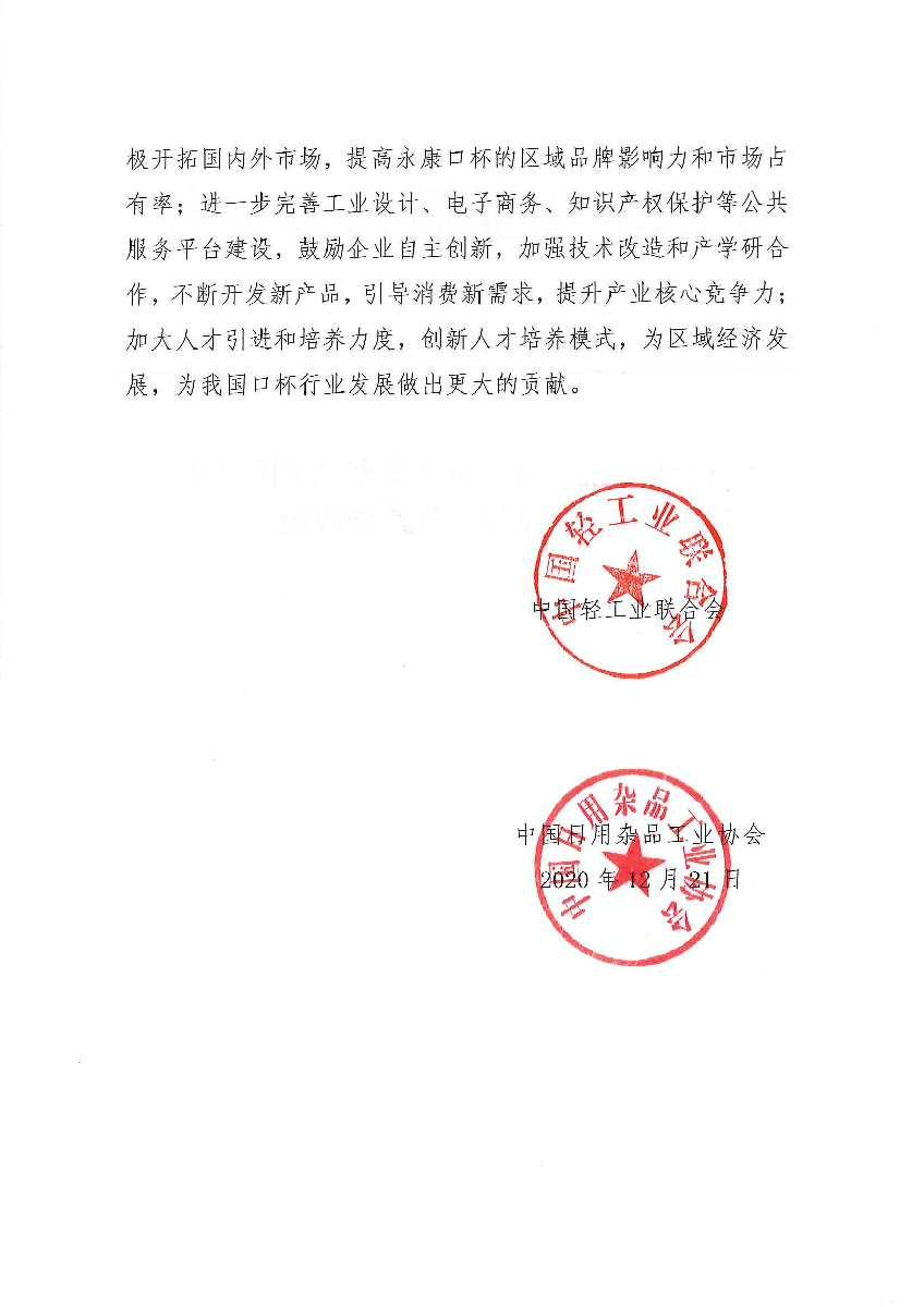 关于继续授予浙江省永康市“中国口杯之都·永康”称号的通知