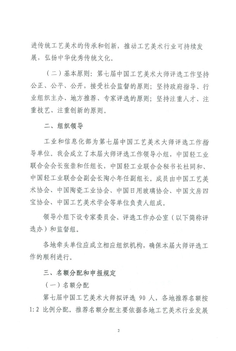 关于开展第七届中国工艺美术大师评选工作的通知