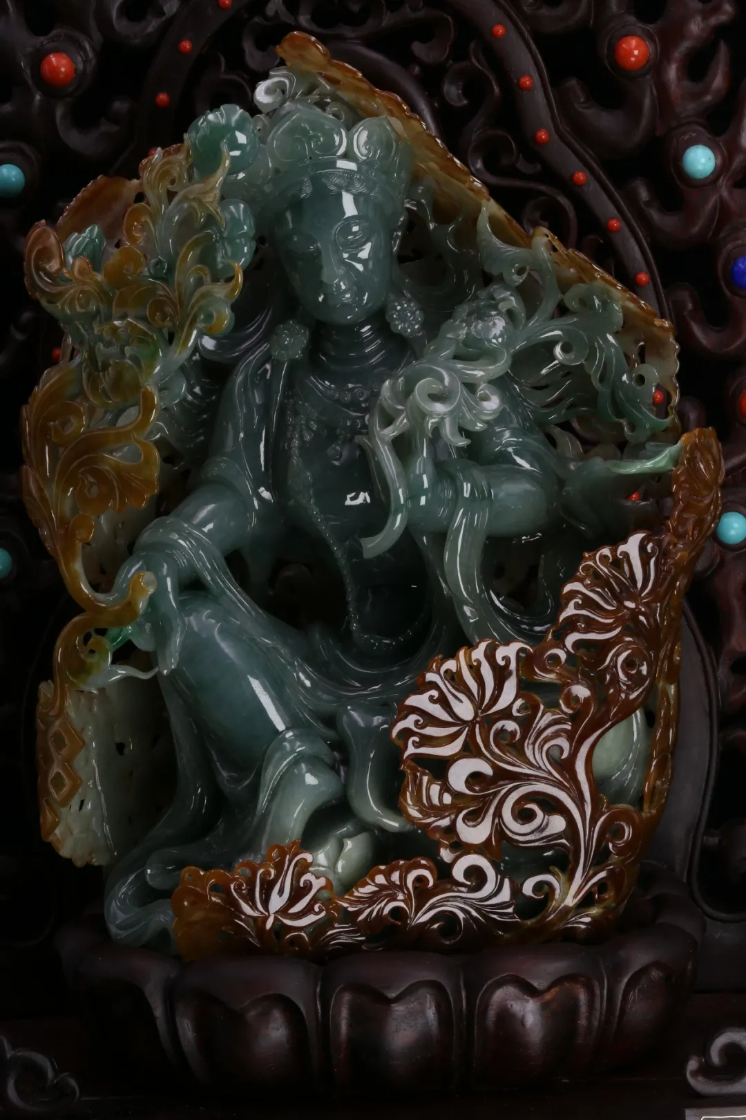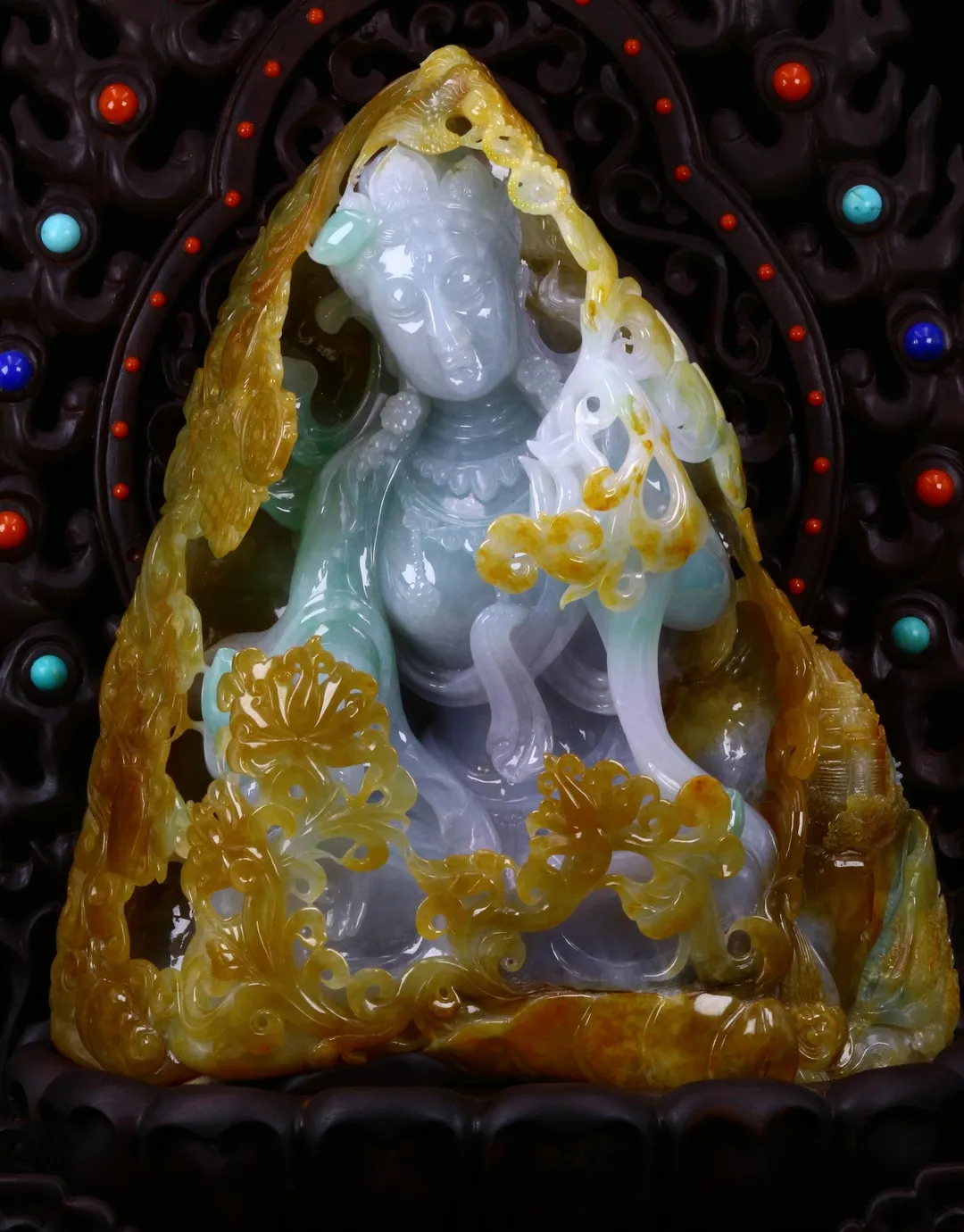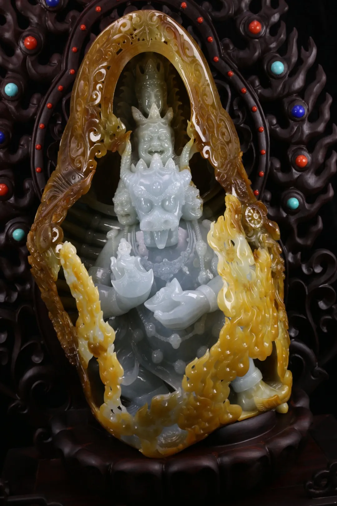 崔奇铭大师继承传统又推陈出新,在北派宫廷玉器艺术特色的基础上融入自己的创新理念,形成了独特的玉雕风格。他的翡翠作品构思新颖,惟妙惟肖,以俏色巧雕、皮色巧雕居多,玉雕人物神形兼备,山子摆件古朴典雅,玉牌挂件精致玲珑,翡翠“红皮白肉”“黄皮绿肉”之美呼之欲出。其佛像作品最具特色,既遵循历代佛教造像艺术的法度,又揉进了现代人物造型的处理手法,融注佛理禅心的内涵,嵌入花鸟山水的美景,整体作品庄严肃穆而又灵动传神。