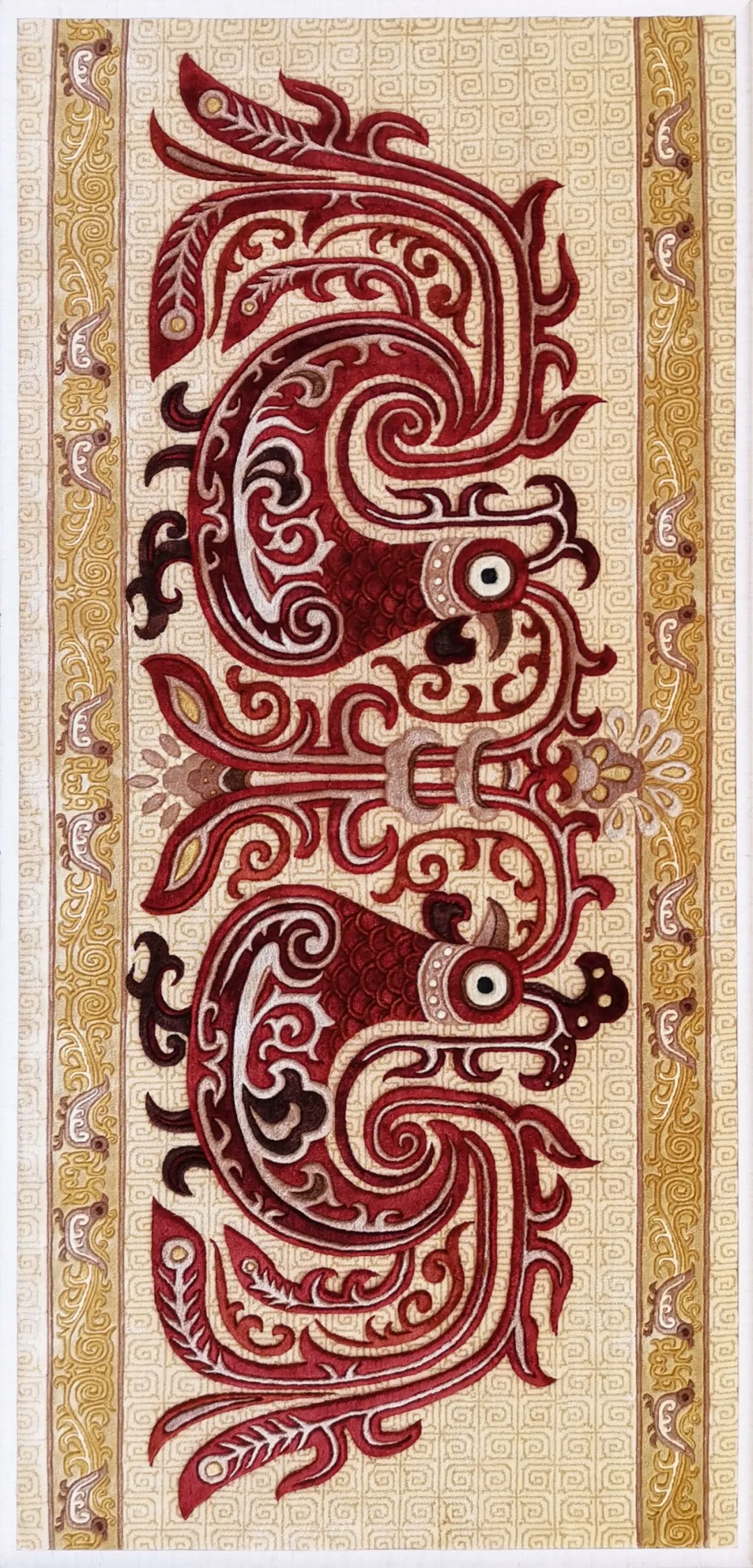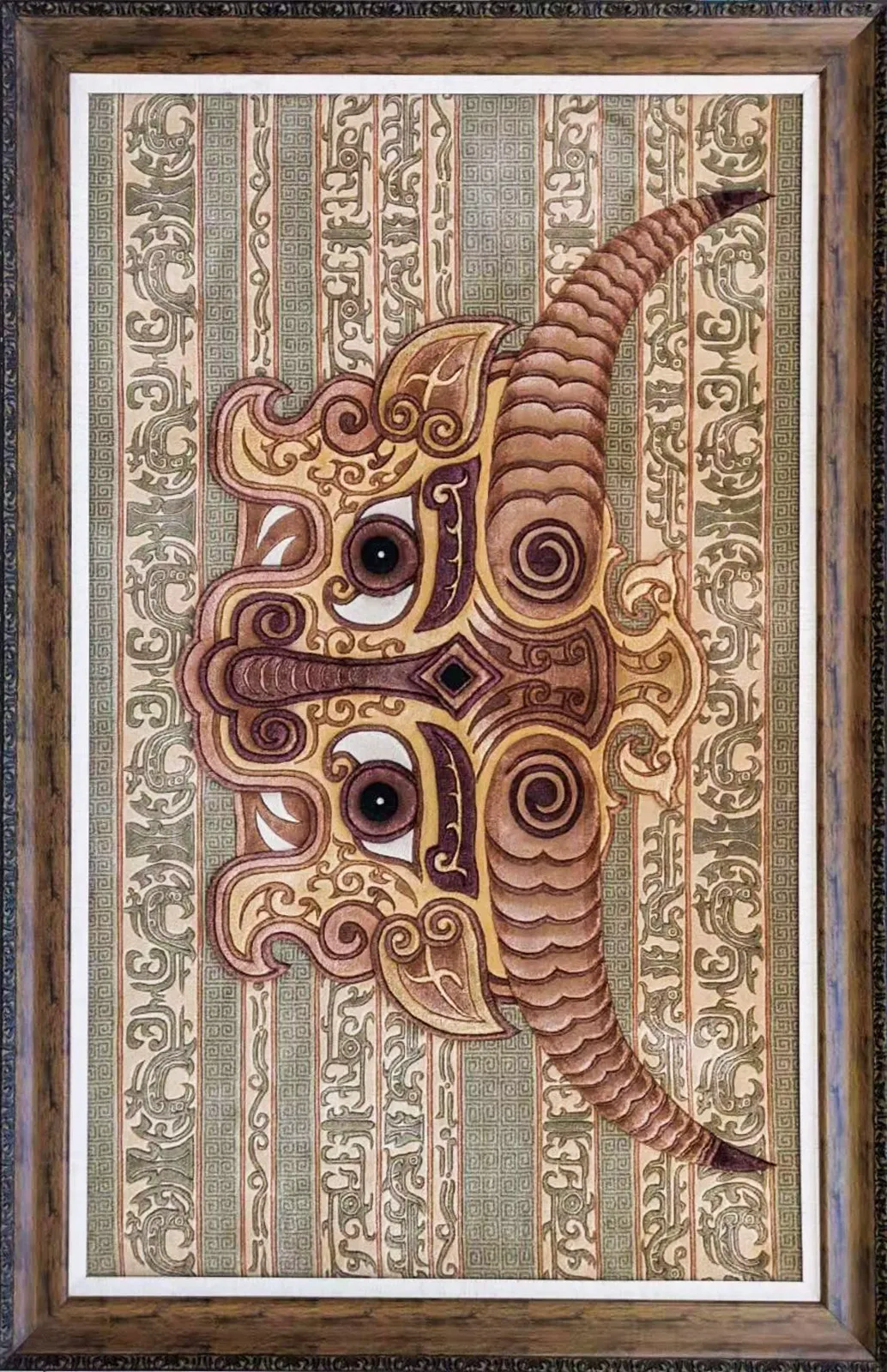刘静波大师的作品具有天水独特的地域文化特色,制式严谨,用料讲究,工艺复杂,继承了汉唐时期传统手工织造技艺,集青铜文化、雕刻、壁画、绘画、书法之大成,以优质蚕丝为原料,通过图案设计、染色、编织、雕刻等工序,经纯手工制作而成。刘大师的作品气势磅礴,新颖独特,内涵丰富,底蕴深厚,具有很强的艺术价值和文化价值,多件作品被钓鱼台国宾馆、中国驻美国大使馆、中国驻日本国大使馆等收藏。
