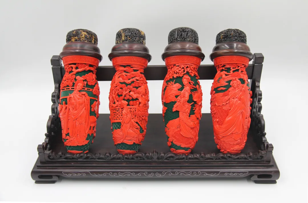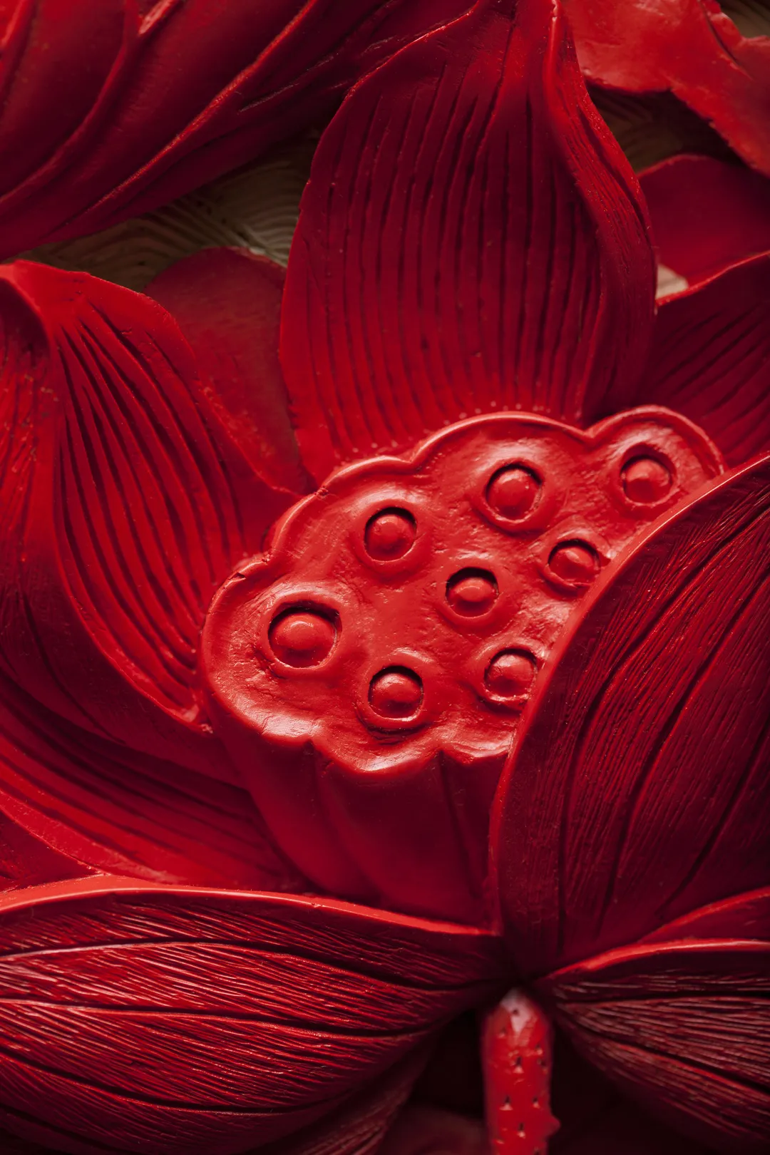 满建民大师的雕漆作品器型纷繁多样,雕工细腻精炼,线条精细流畅,层次泾渭分明,巧妙融合了国画艺术风格,融入了中国古典元素,刻画的山川峡谷层峦叠嶂,江河湖海波澜壮阔,人物形象惟妙惟肖,草木鱼虫栩栩如生。满大师的作品中,显现出刻刀在漆层中穿梭的游刃有余,透出了器物整体气韵的顺畅与通达。