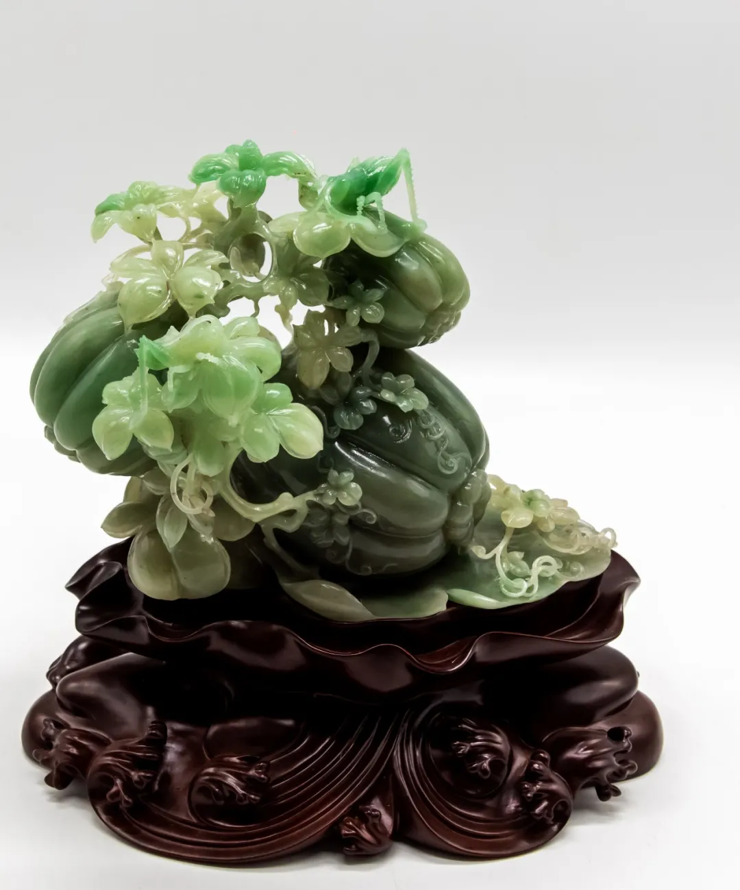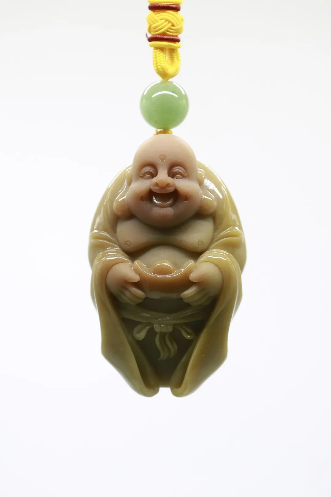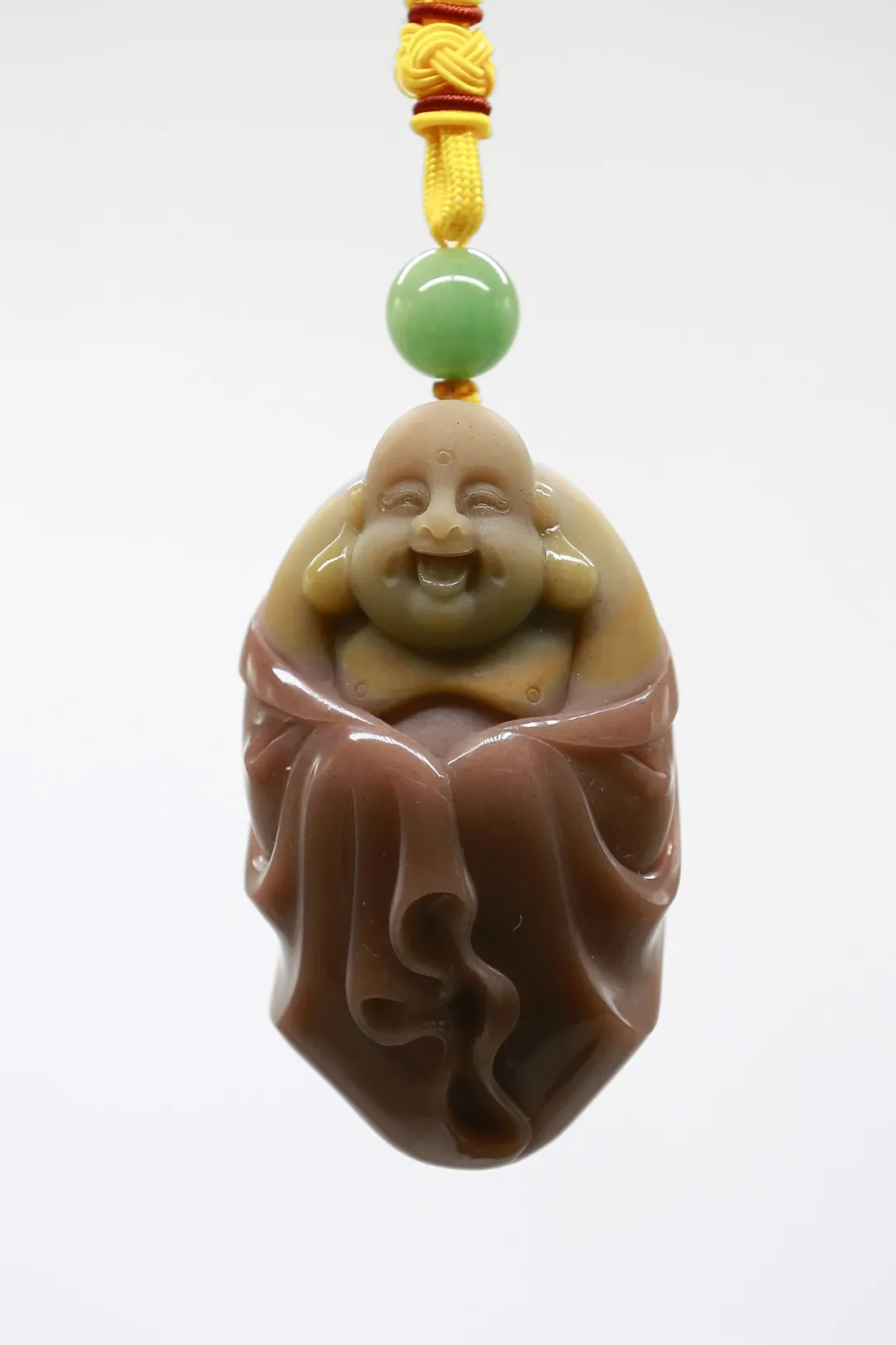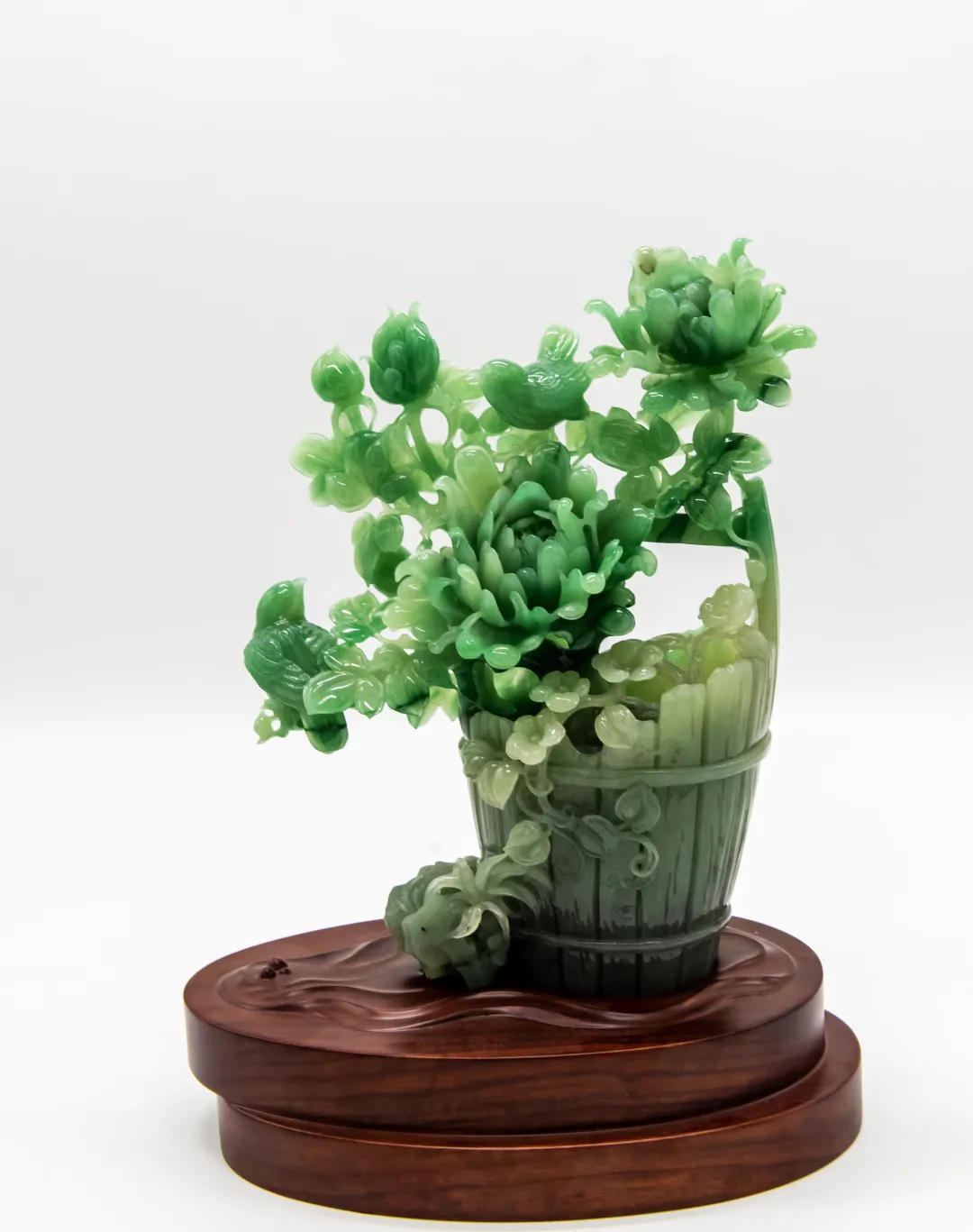 作品巧妙利用红、黄、白三色俏色密玉,将红色部分雕刻为衣着服饰,将黄色部分雕刻为鸡和鸭,色彩运用合理恰当,富有浓厚的乡土气息。作品创作灵感来源于经典民谣《回娘家》,“身穿大红袄,头戴一枝花,胭脂和香粉她的脸上擦,左手一只鸡,右手一只鸭,身上还背着一个胖娃娃”,充分刻画出广大劳动人民对美好生活的淳朴向往和乐观向上的生活态度。