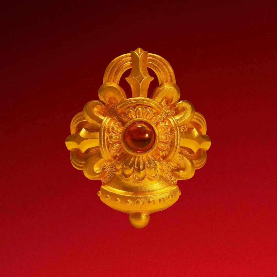 五方佛又称五智佛、五方如来、五智如来,为佛教所崇奉,据唐不空三藏所译《菩提心论》记载,大日如来为教化众生,将本具之五方五智变化为五方五佛。 这组银质装金五方佛,系模仿故宫博物院梵华楼造像,为乾隆时期风格,保留些许尼泊尔遗风,头饰螺发齐整有序,眉间镶嵌钻石,神情祥和,衣纹舒展,手印各异。原本遵照梵华楼造像结全跏趺坐于双层莲台之上,后依多方意见且参照明代宫廷造像,而修改为双层仰覆莲台。又采用显微镜下之雕蜡技术等先进工艺,使小型造像更为精致。