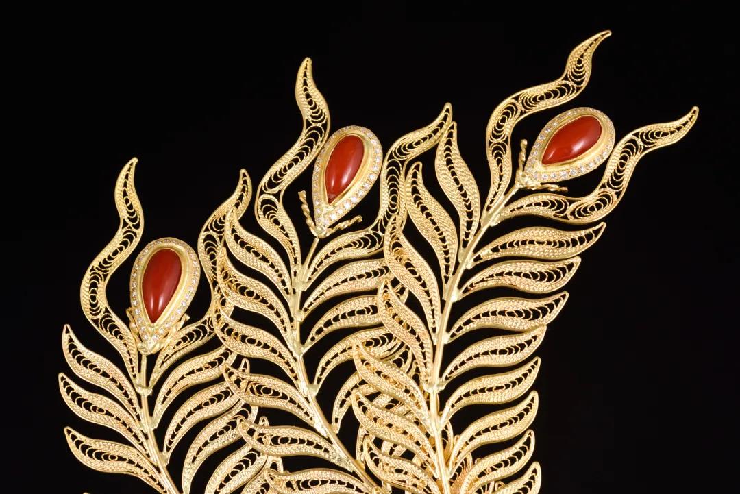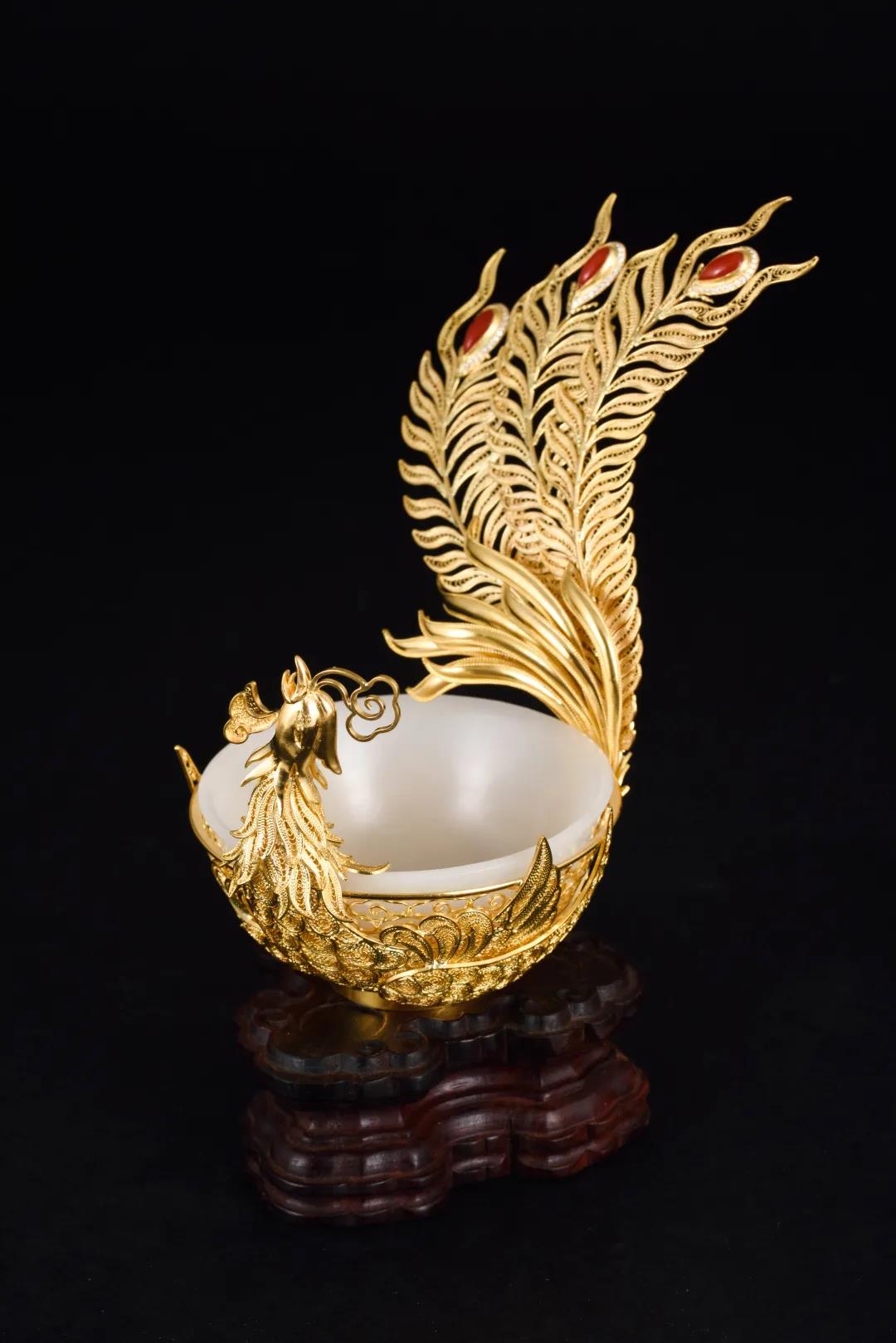 材质:22k金 和田玉 珊瑚 钻石 凤凰是华贵太平的象征,是人们心目中的瑞鸟,代表着幸福和吉祥,象征着美满和谐的爱情。在我国古代,凤凰还是权力的象征,一般出现在各种皇宫建筑使用器物之上。