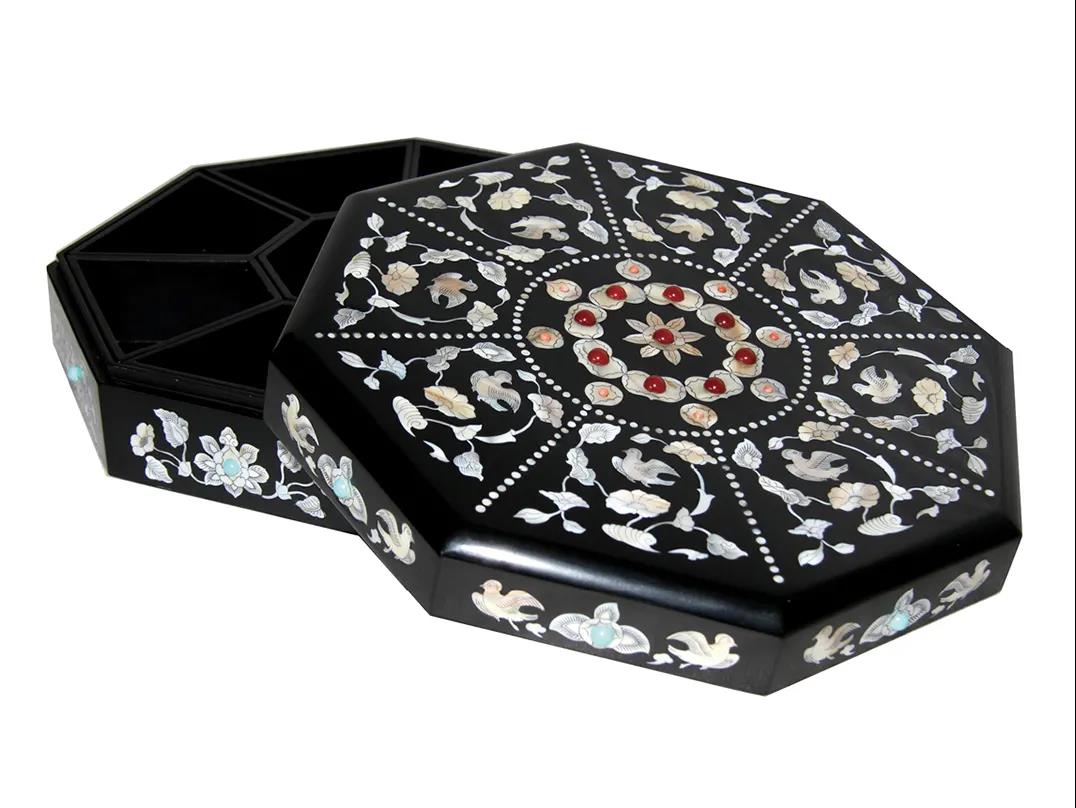 精工嵌螺钿荷花鸳鸯八方盖盒