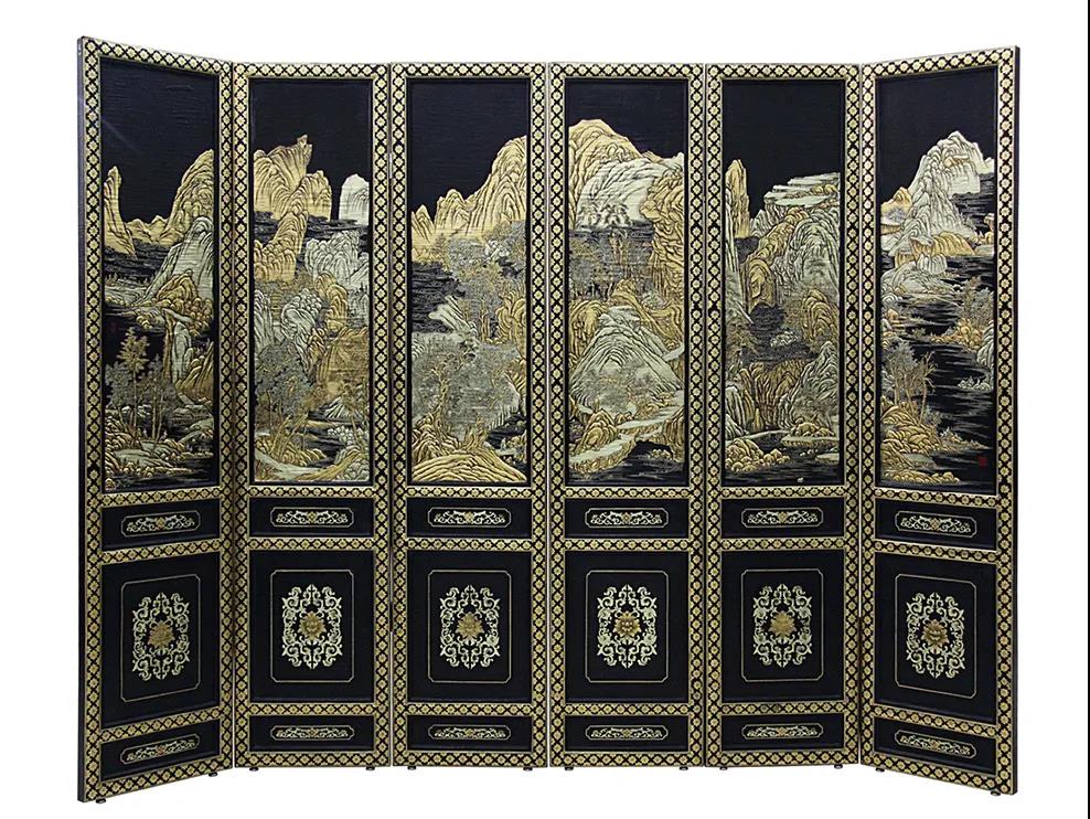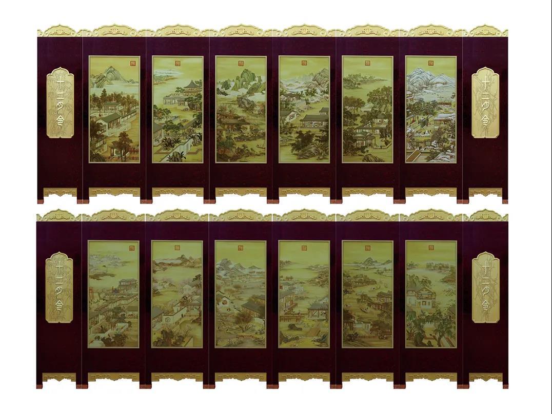 精工雕填堆古彩绘贴金《十二月令图》屏风