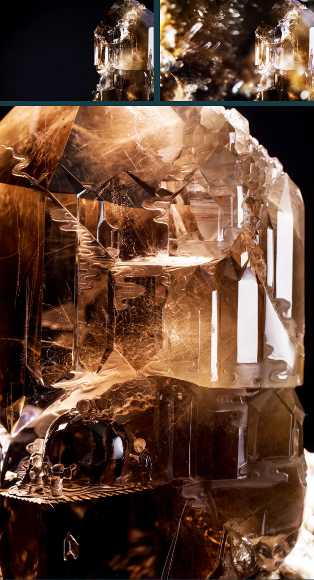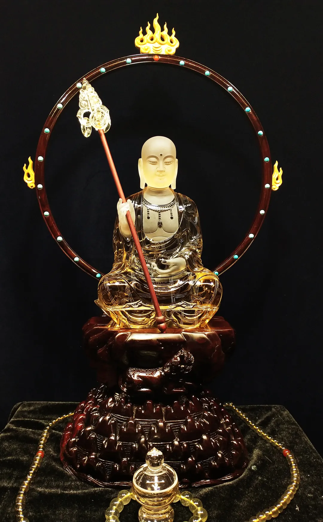 天然茶晶雕刻《大威德金刚》将水晶与佛教文化相融合,采用虚实兼备的雕刻技法,圆雕、浮雕、立体雕、线刻等融为一体的雕刻手法,亮光、亚光、磨砂为一体的抛光技巧,将威德形象展现的栩栩如生。作品构思精巧,格局宏大,工艺精湛,极富有艺术价值和审美价值。