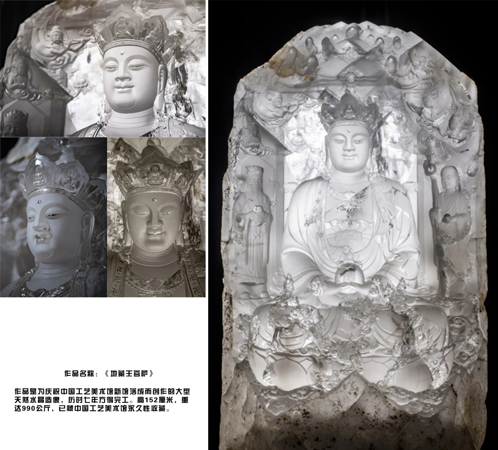 第五届中国工艺美术大师,非物质文化遗产传承人。出生于琢玉世家,钟情晶雕创作,善于将天然水晶与宗教题材相结合,通过富有现代艺术性的设计和雕刻,赋天然水晶以艺术思想和文化内涵。