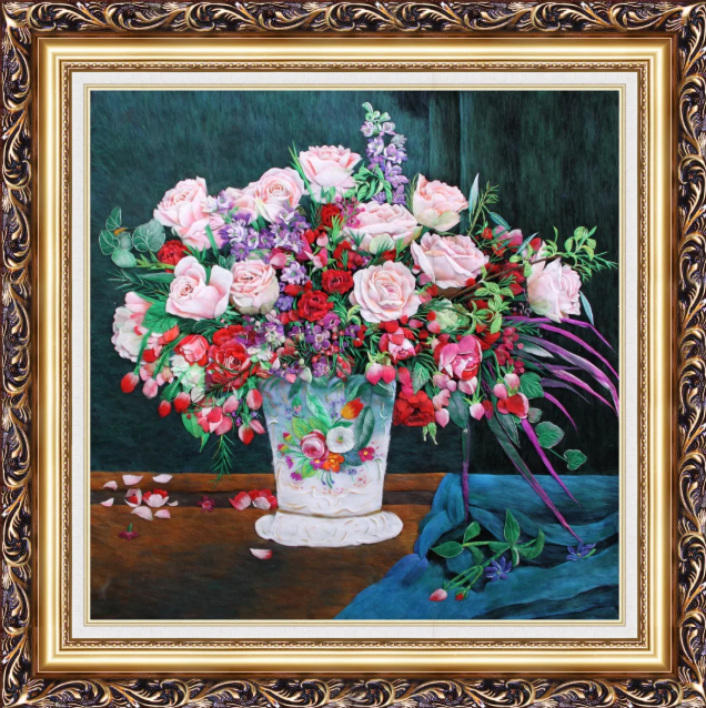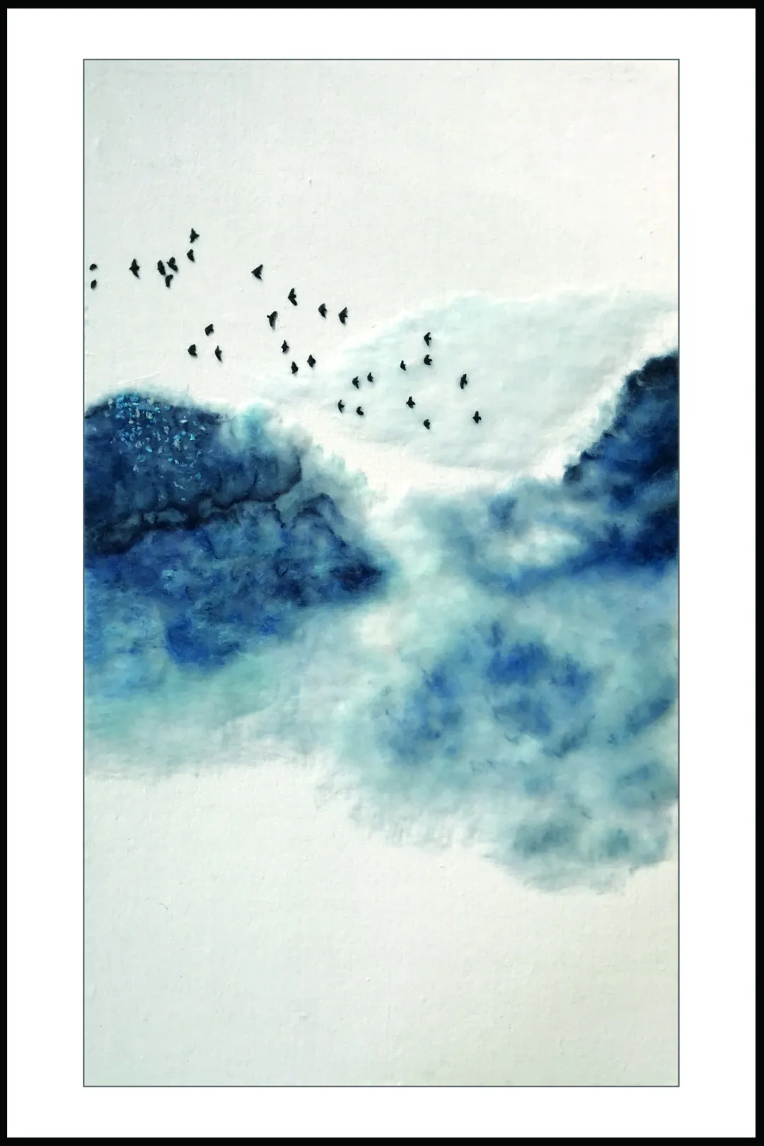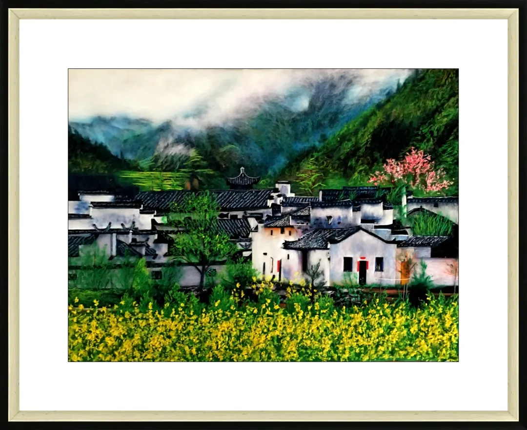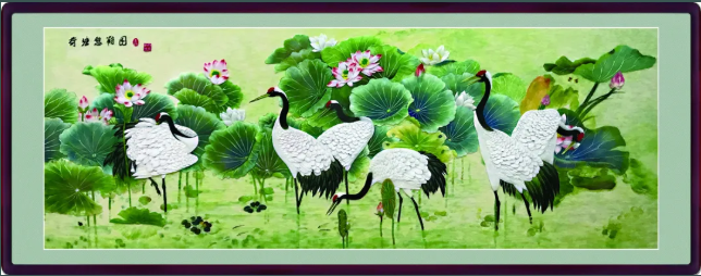 洪滨丝画集梳棉、染色、绘画、装帧等手工技艺为一体,取材天然丝棉,通过搓、拉、捻、剪等手法,凭借手工摩擦产生的静电和材料自然的附着力,实现对作品造型的控制,使材料肌理的自然美、浅浮雕的层次美得到生动呈现。洪滨丝画的创作形式和绘画语言独特有力,花鸟鱼虫惟妙惟肖,湖光山色一派天成,呈现出顺其自然、随心所欲、无物不可入画的艺术风格。
