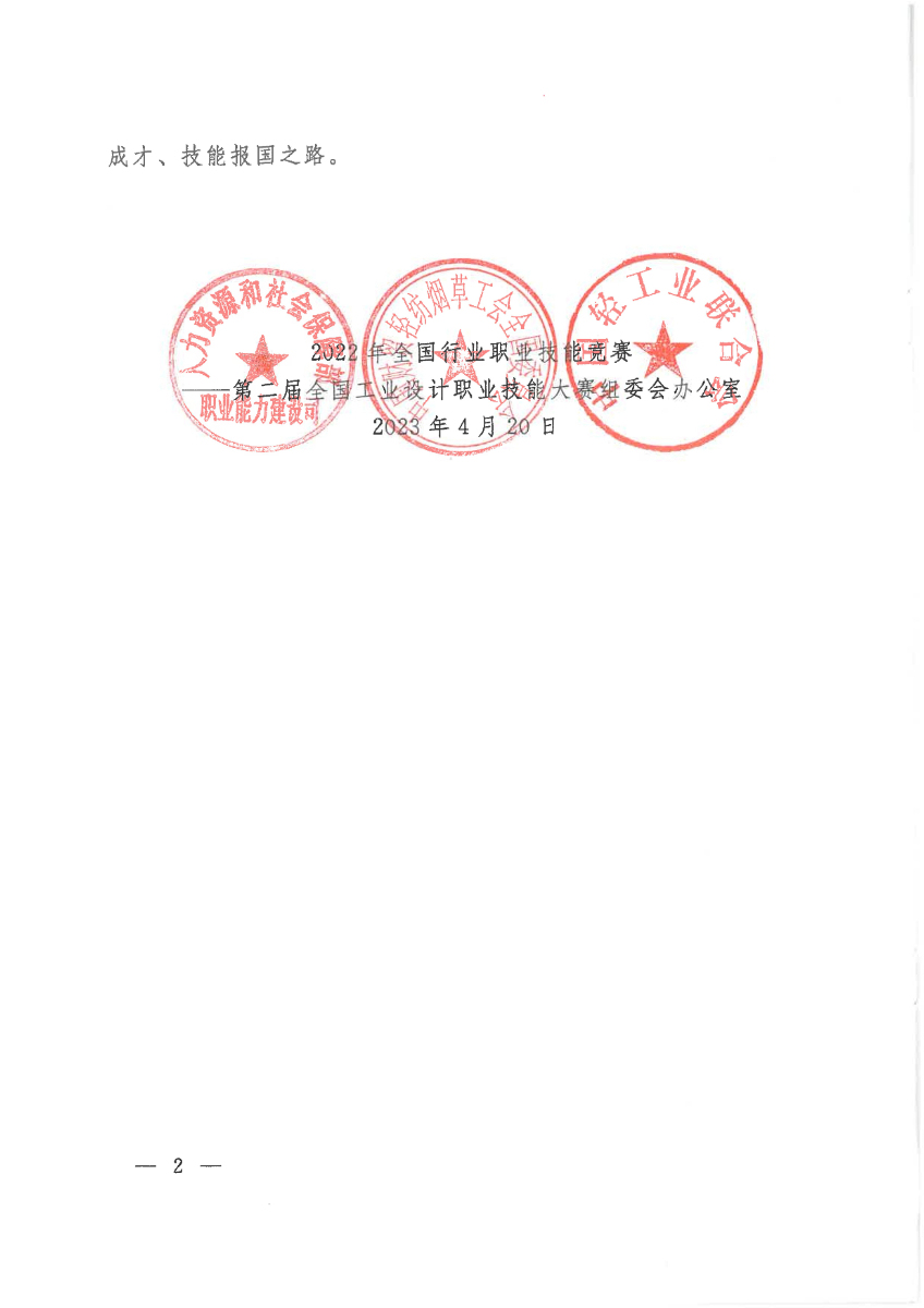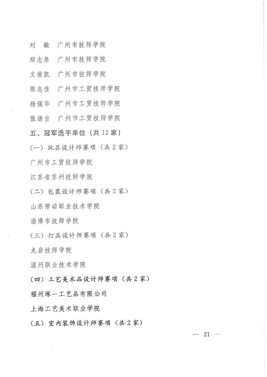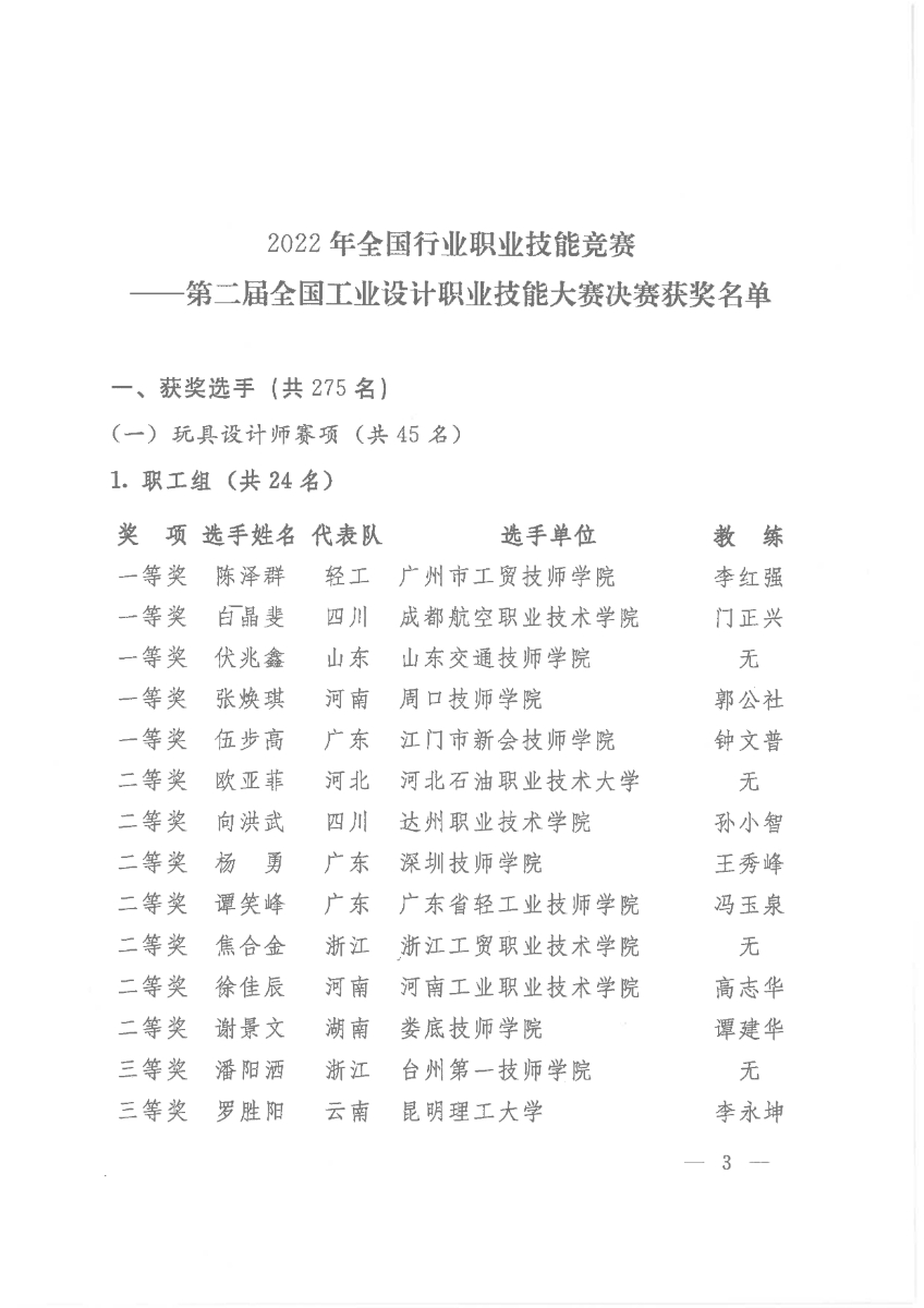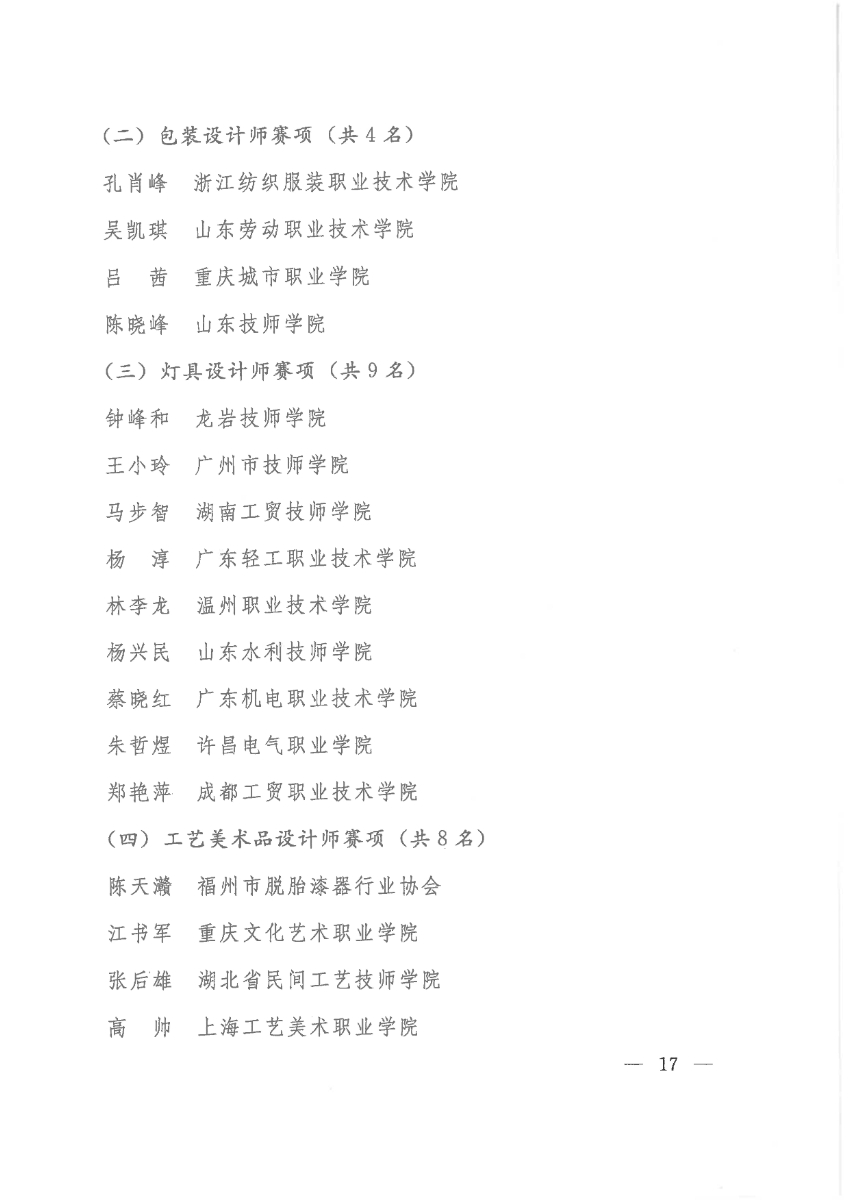 关于公布第二届全国工业设计职业技能大赛决赛获奖名单的通知