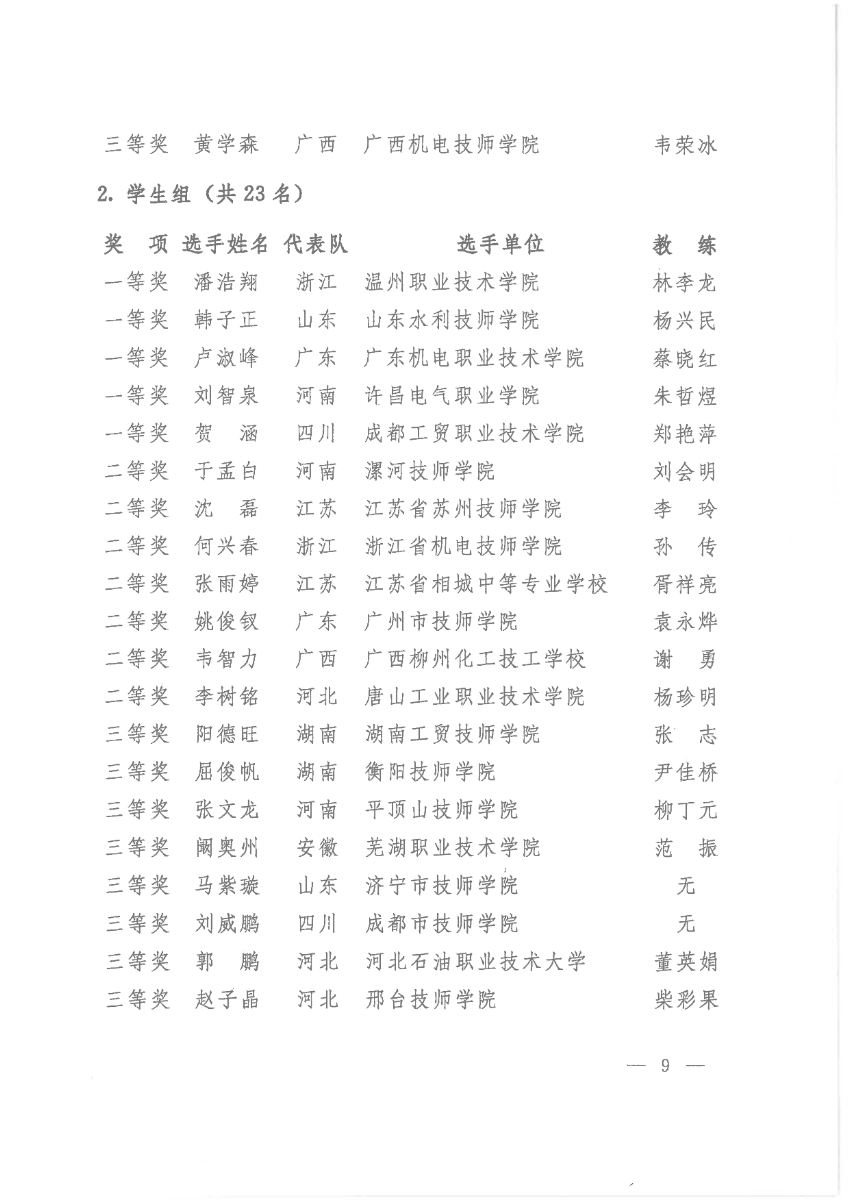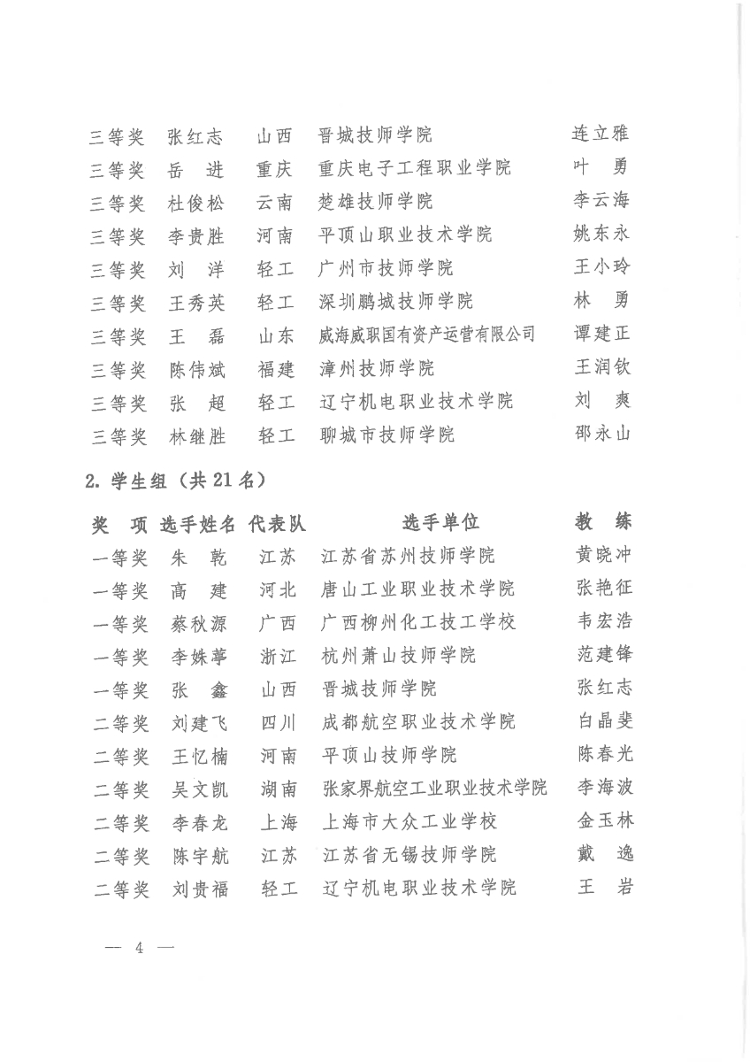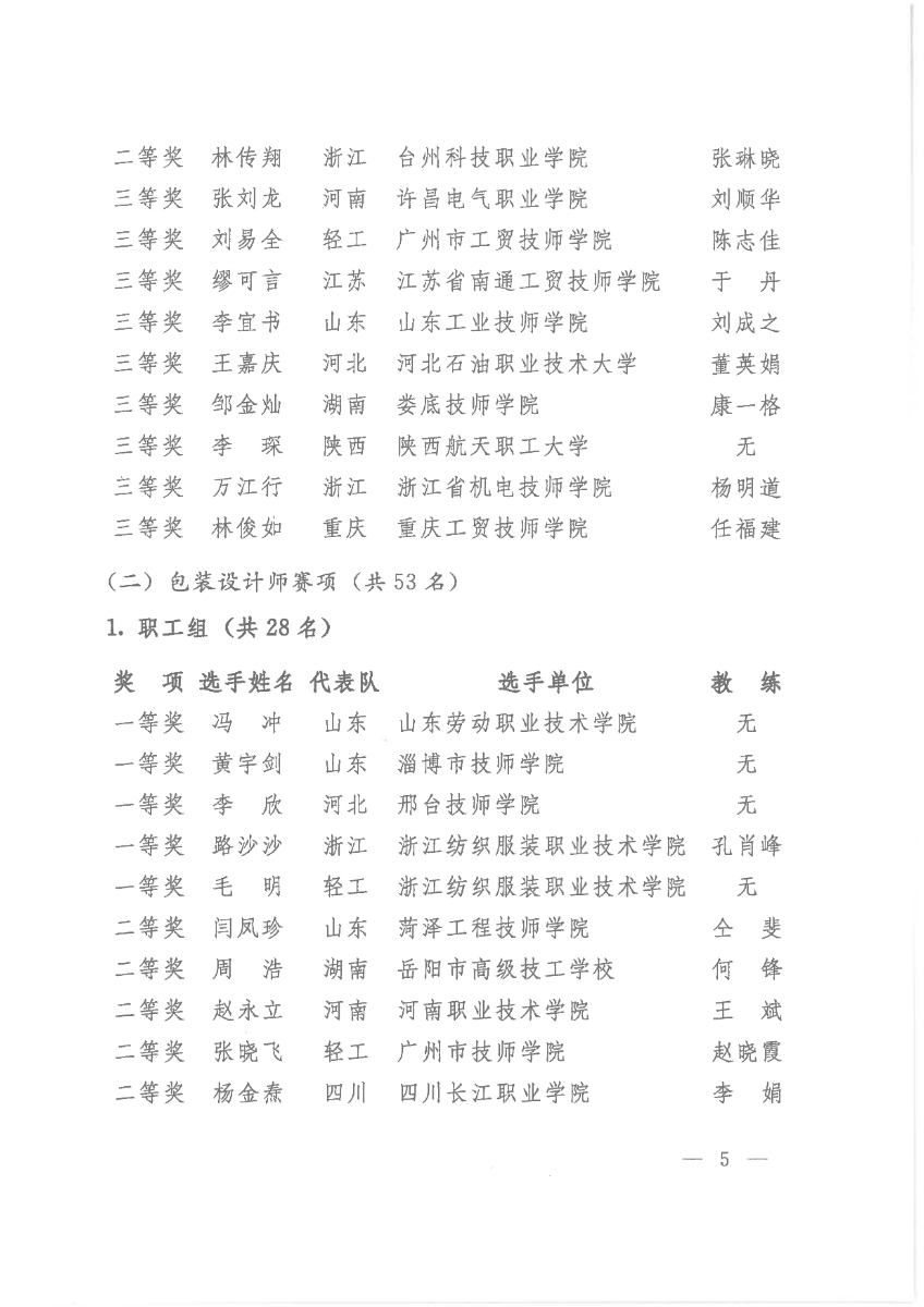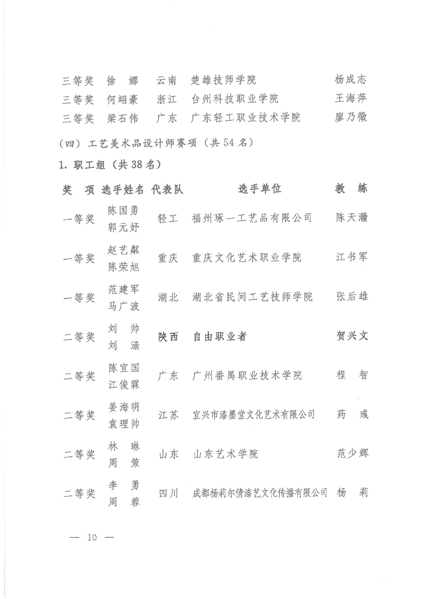 关于公布第二届全国工业设计职业技能大赛决赛获奖名单的通知