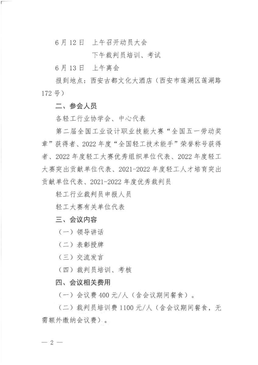 关于举办2023年全国行业职业技能竞赛——轻工大赛动员大会暨轻工行业裁判员培训的通知