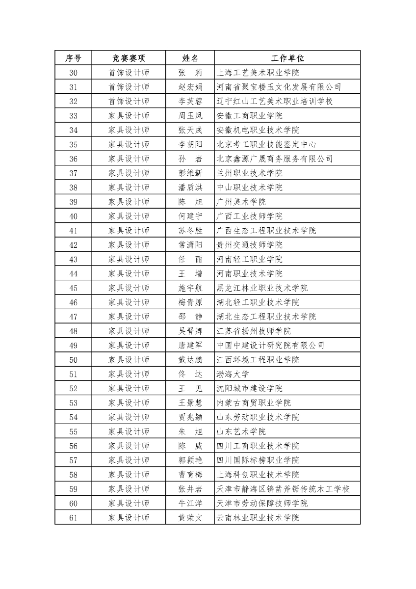 关于公示第三届全国工业设计职业技能大赛决赛裁判人员名单的通知