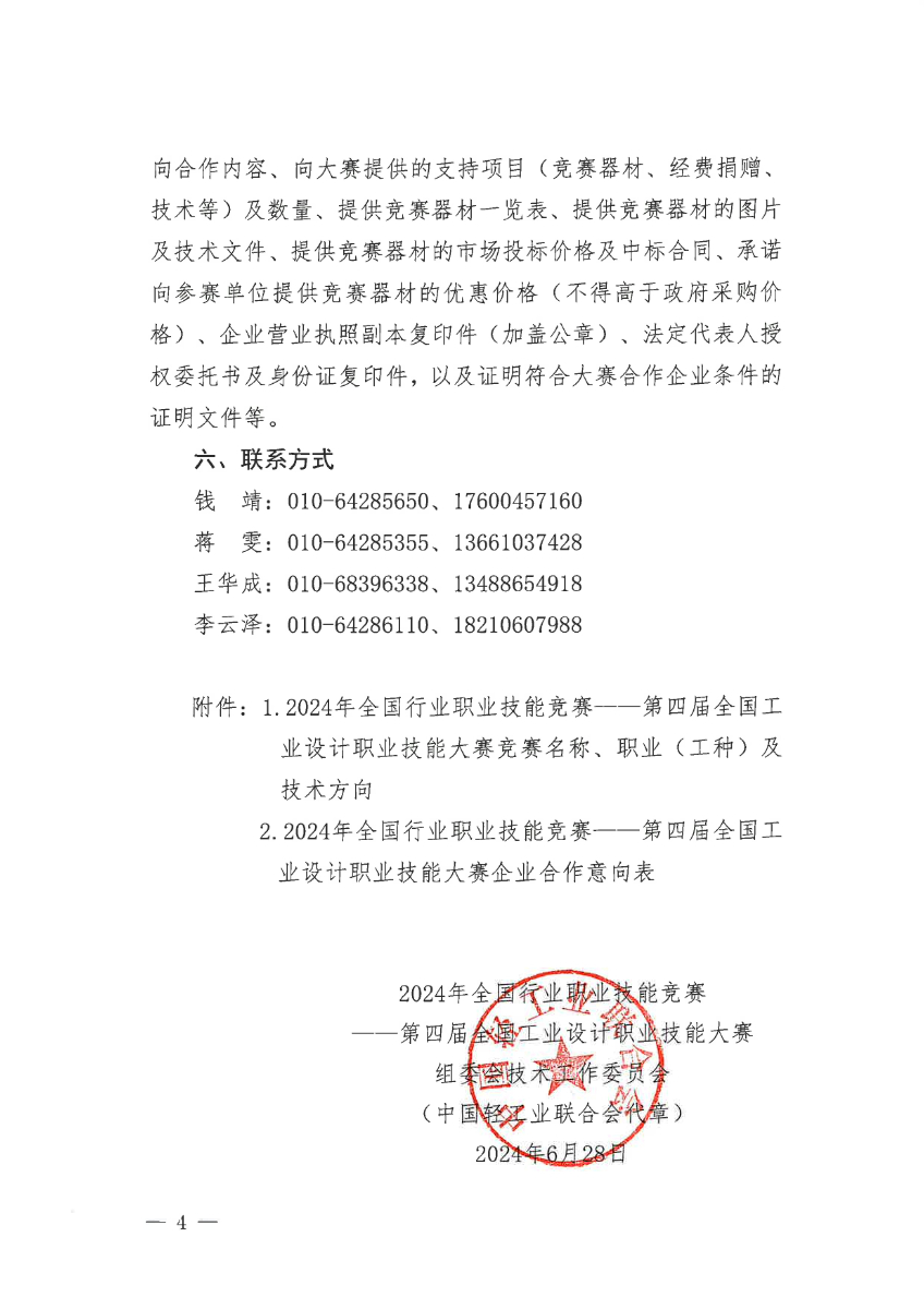 关于征集2024年第四届全国工业设计职业技能大赛合作伙伴的通知.pdf