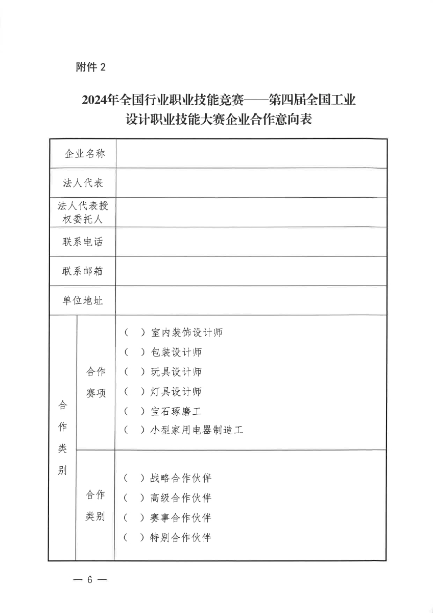 附件2:2024年第四届全国工业设计职业技能大赛企业合作意向表.docx