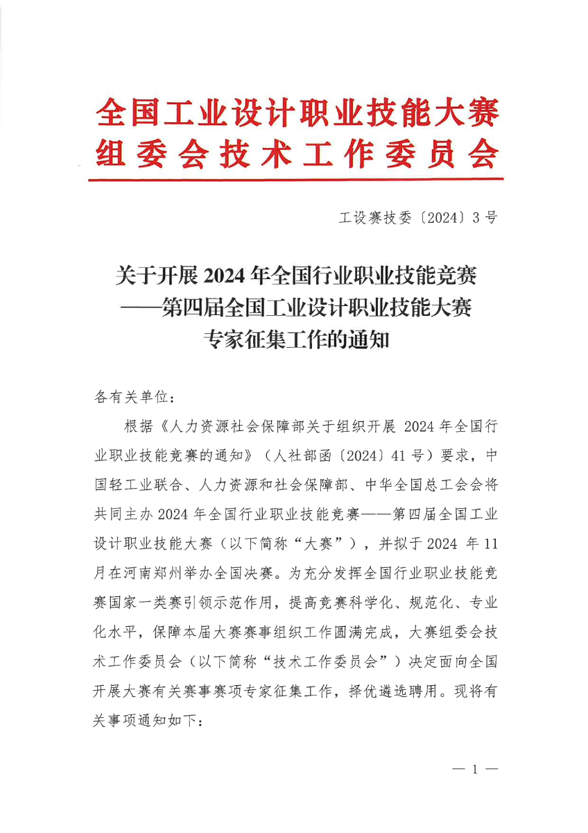 关于开展2024年第四届全国工业设计职业技能大赛专家征集工作的通知.pdf