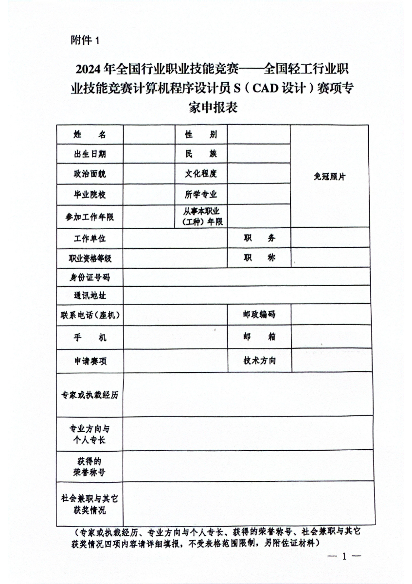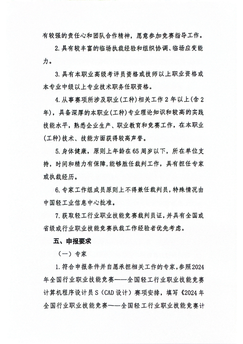 关于开展2024年全国轻工行业职业技能竞赛计算机程序设计员s(cad设计)赛项专家、裁判员征集工作的通知.pdf