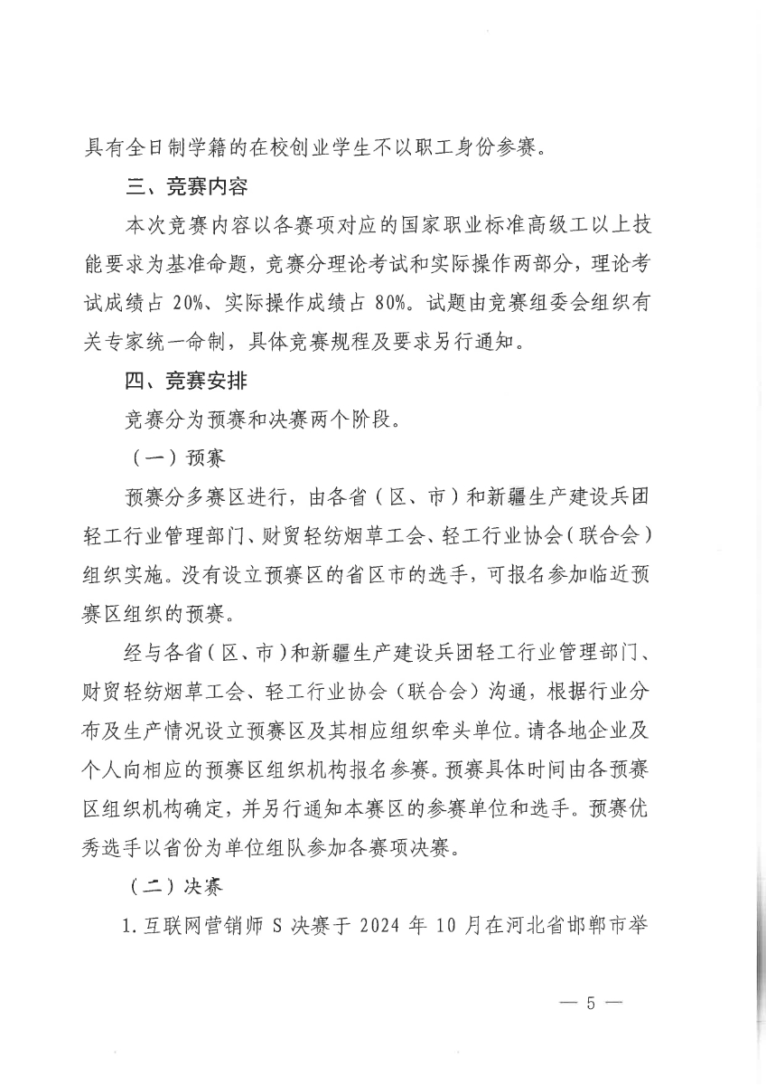 关于举办2024年全国轻工行业职业技能竞赛的通知