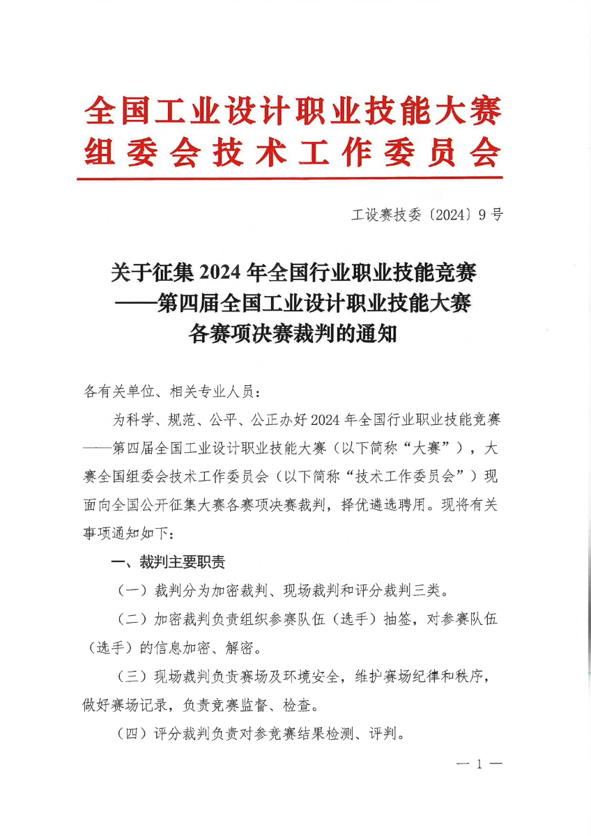 关于征集2024年第四届全国工业设计职业技能大赛决赛裁判的通知.pdf