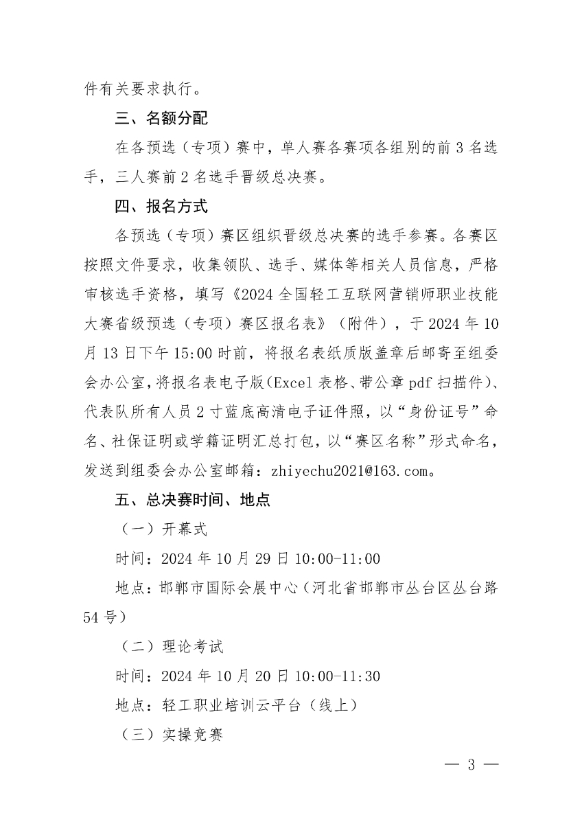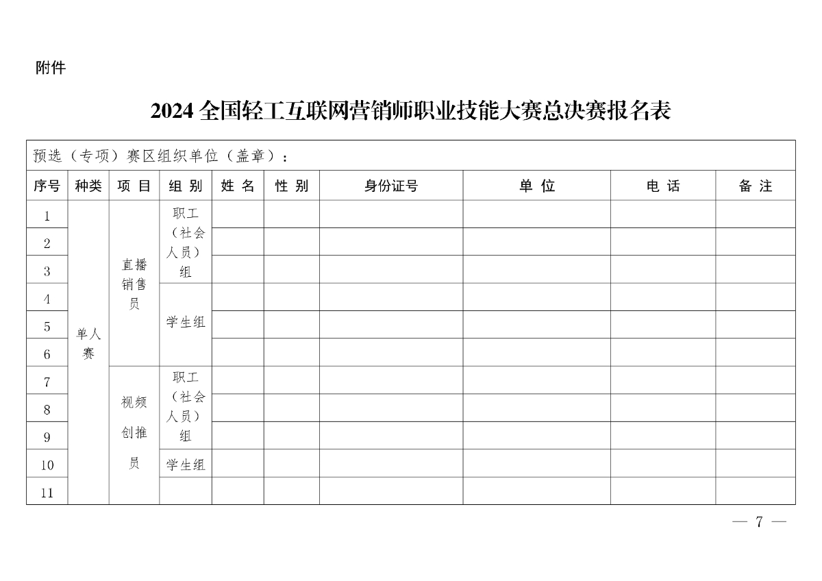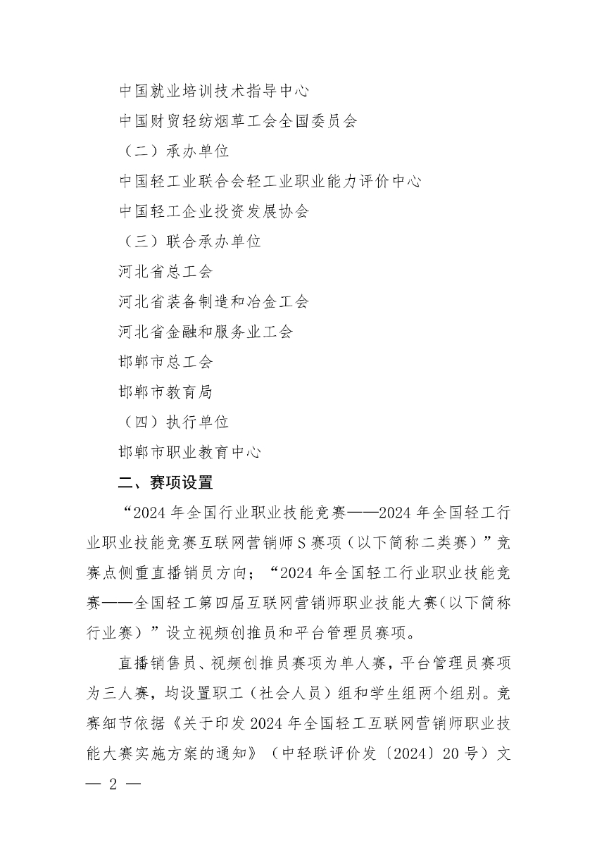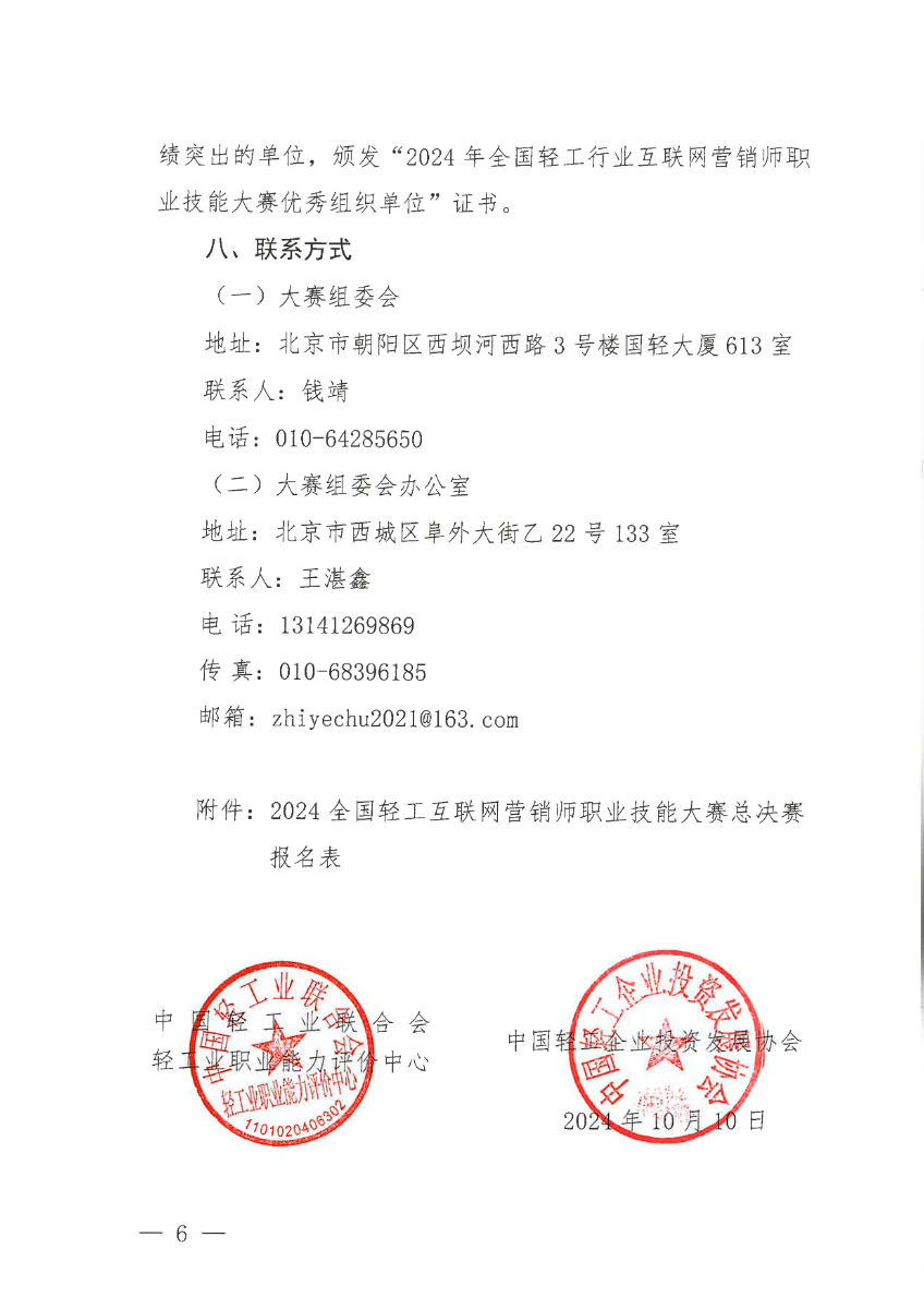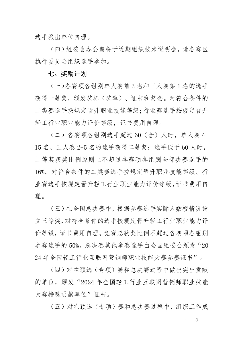 关于2024年全国轻工行业职业技能竞赛互联网营销师S赛项总决赛报名的通知