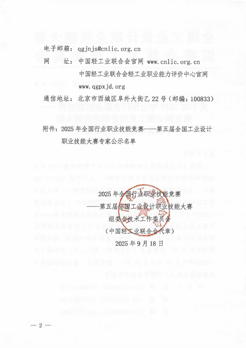 关于对2025年第五届全国工业设计职业技能大赛专家名单进行公示的通知