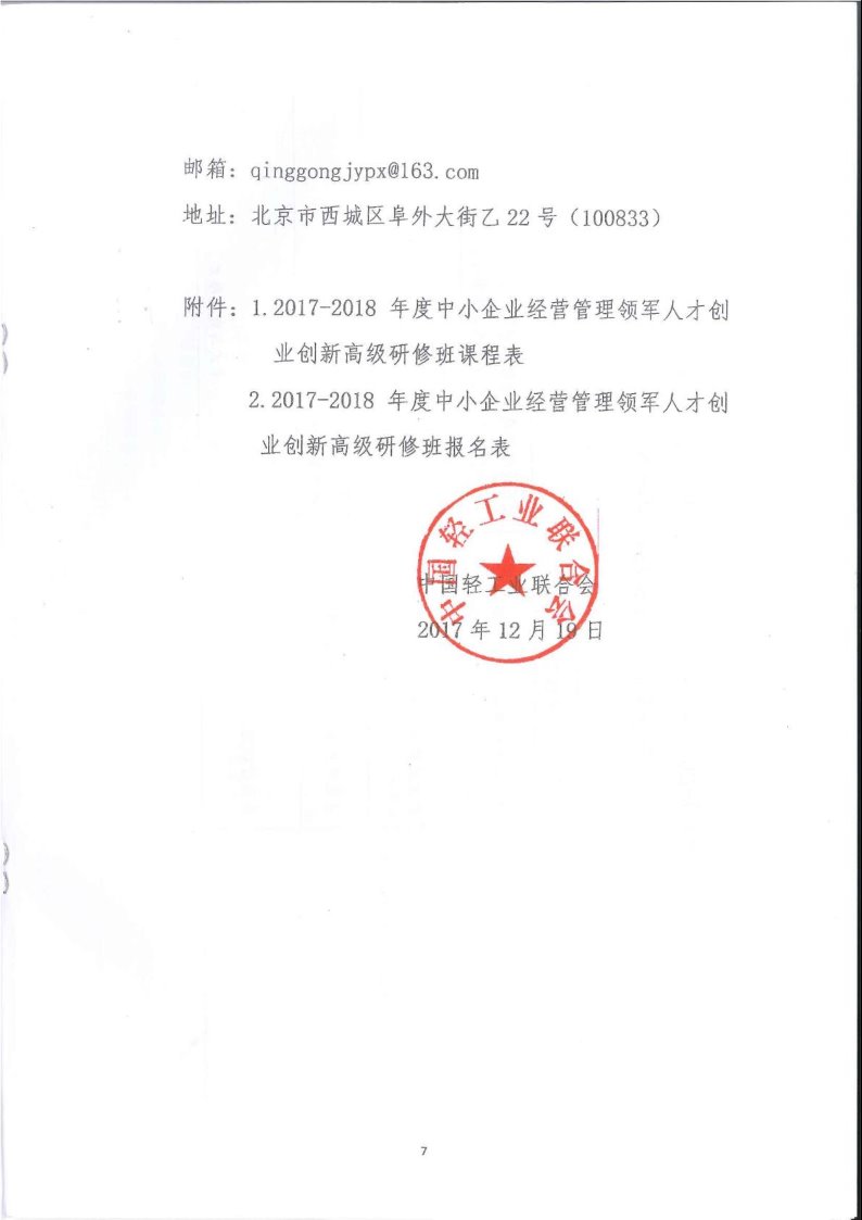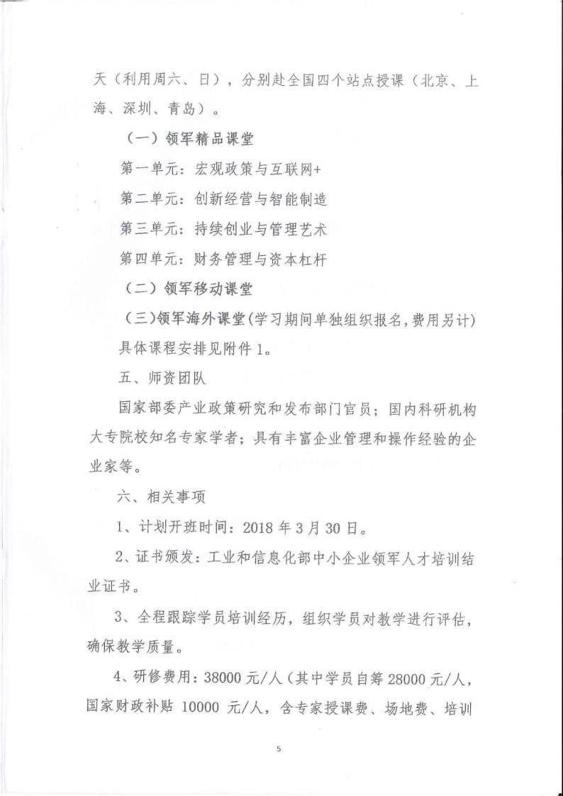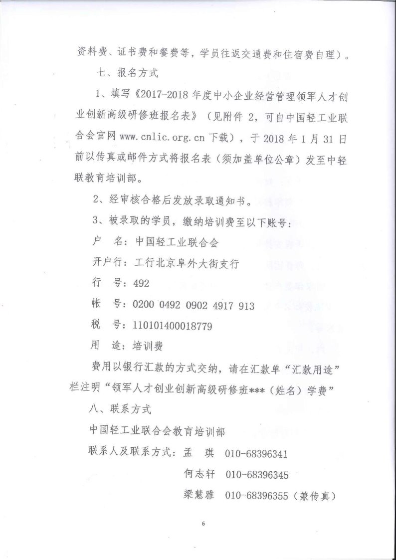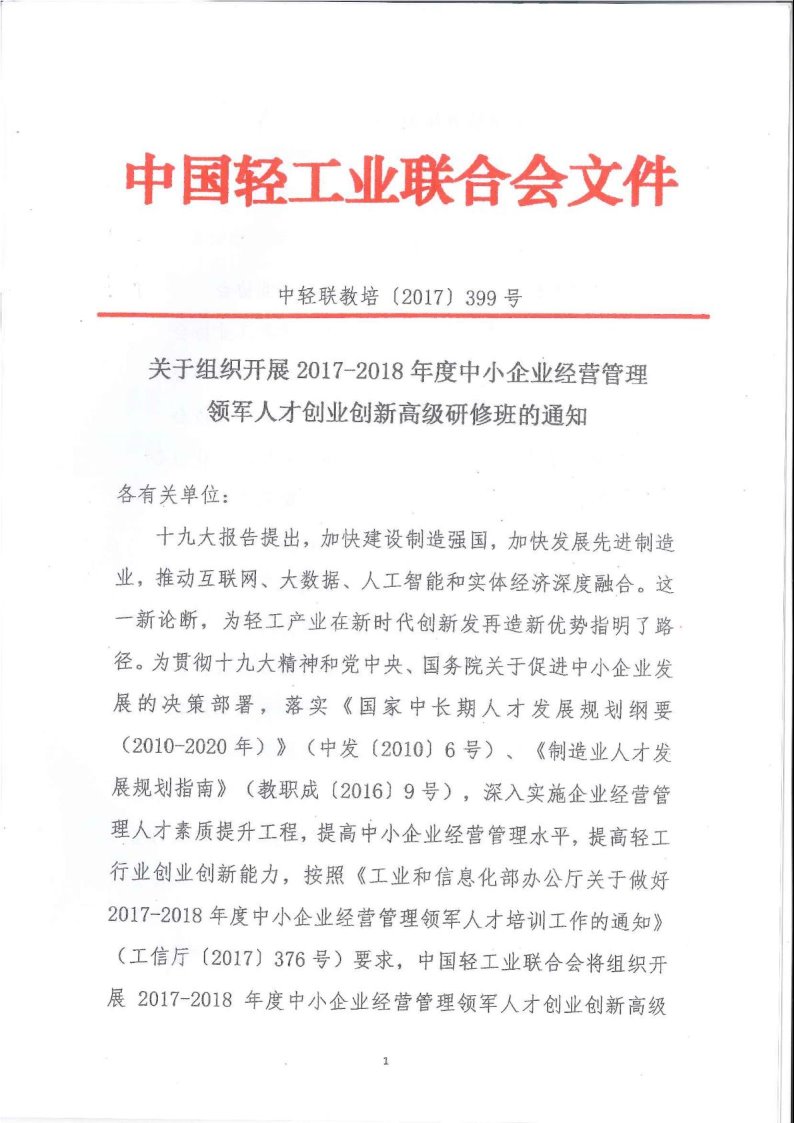 关于组织开展2017-2018年度中小企业经营管理领军人才创业创新高级研修班的通知