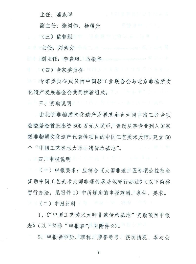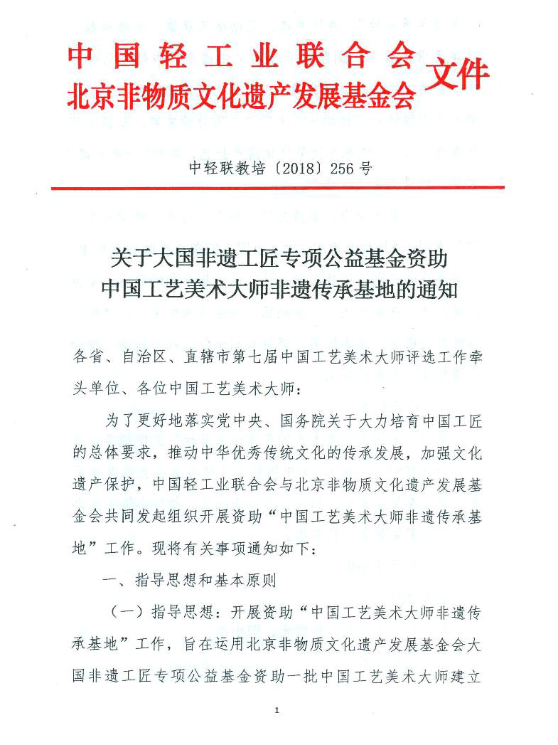 关于大国非遗工匠专项公益基金资助中国工艺美术大师非遗传承基地的通知