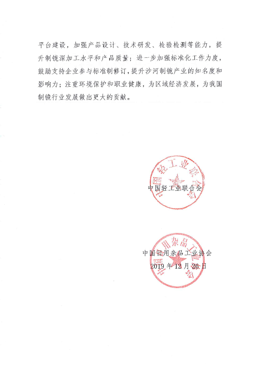 关于授予河北省沙河市“中国制镜基地·沙河”称号的通知