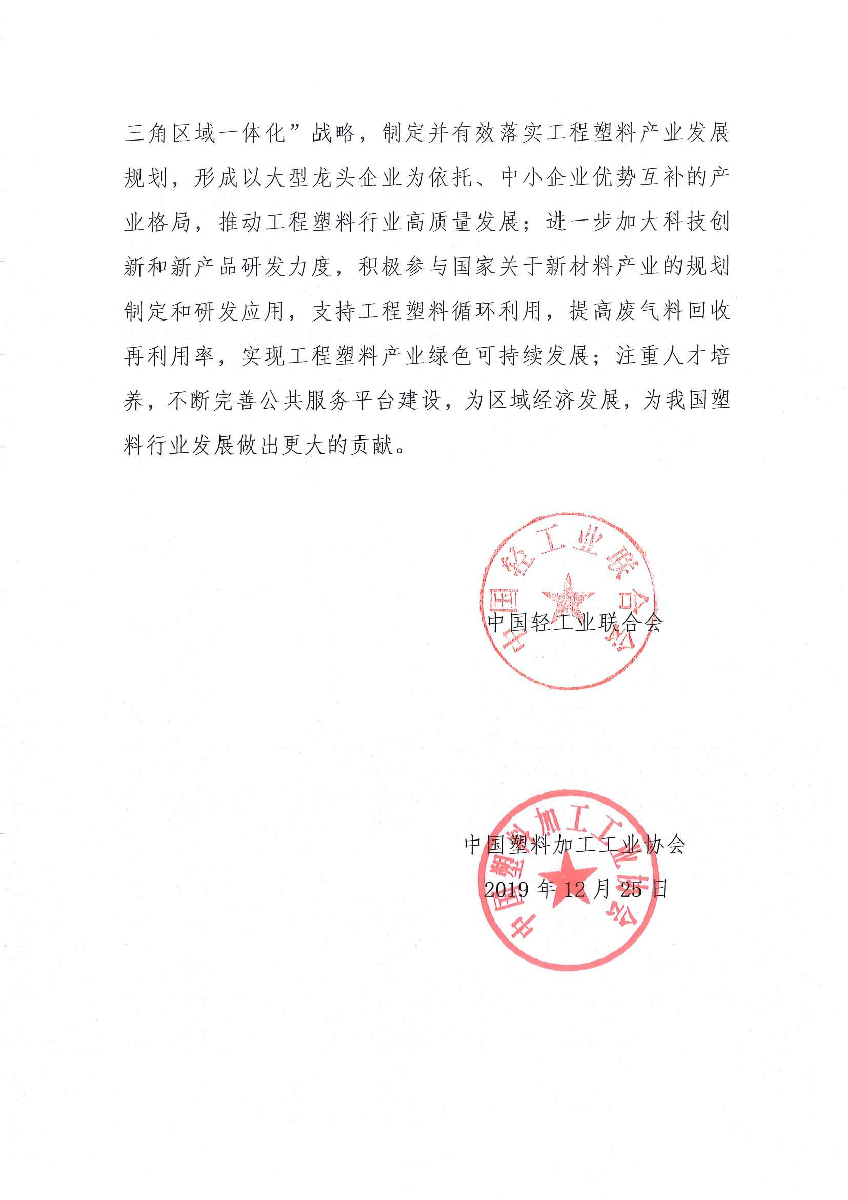 关于继续授予浙江省宁波市“中国工程塑料之都·宁波”称号的通知