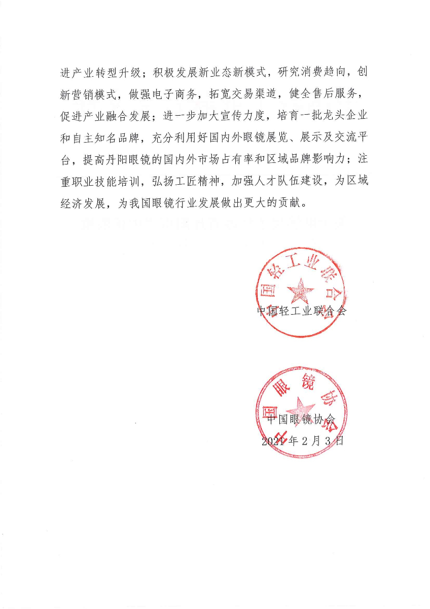 关于继续授予江苏省丹阳市“中国眼镜生产基地·丹阳”称号的通知