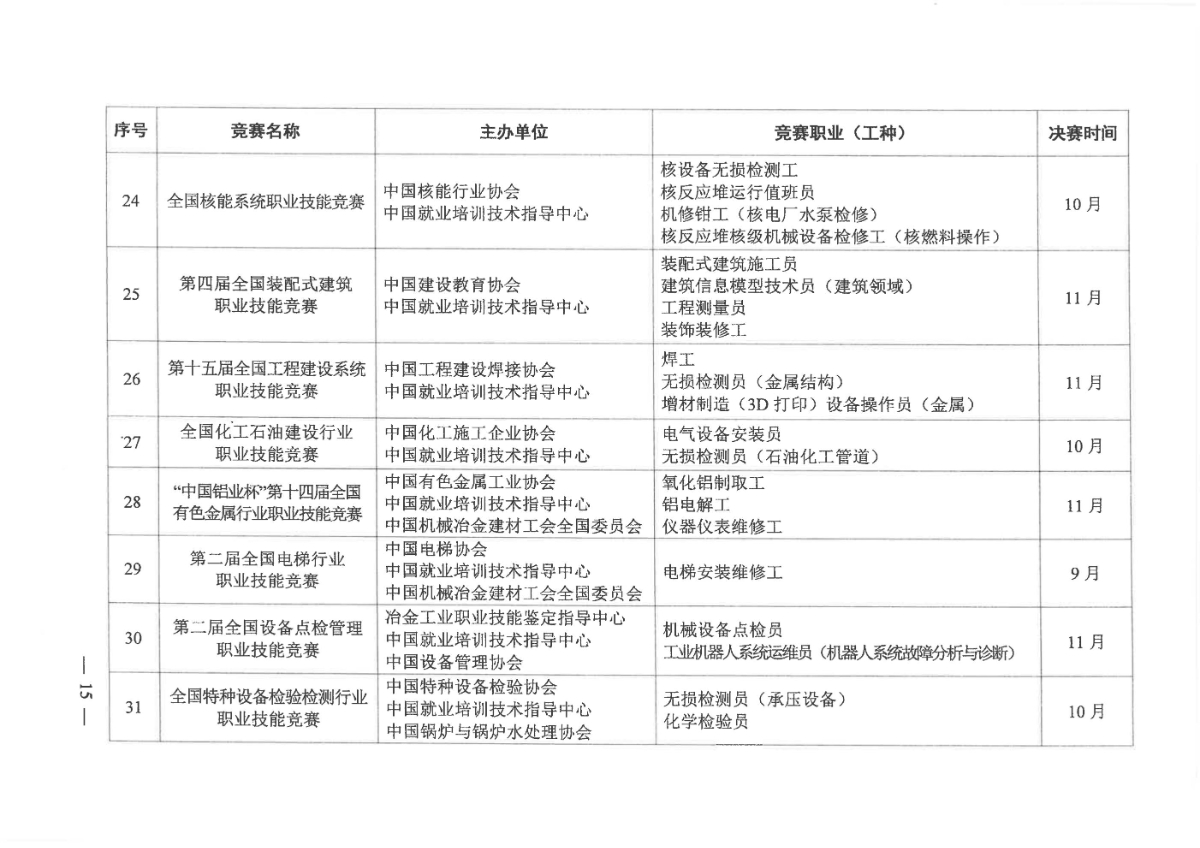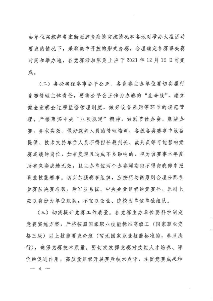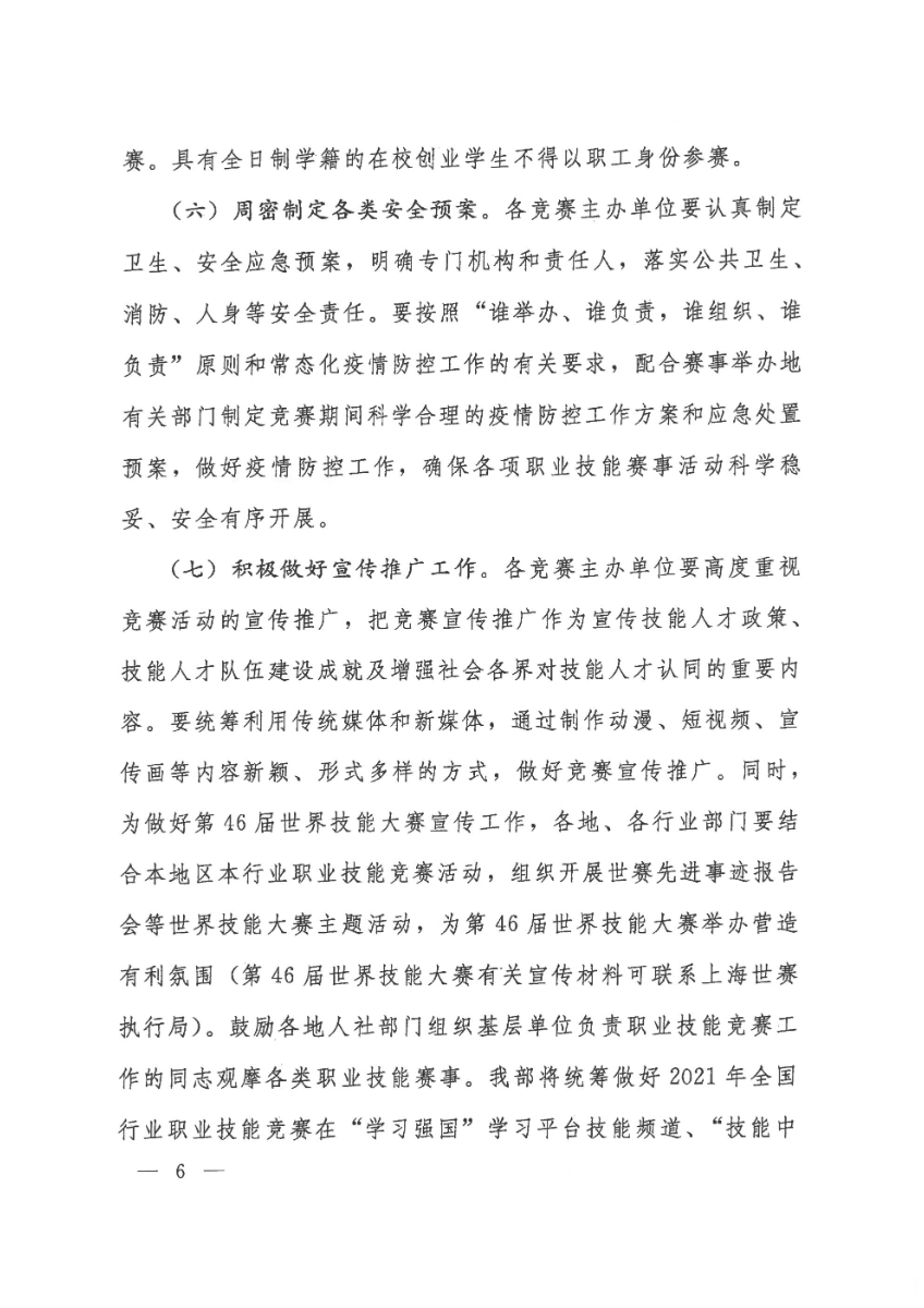 人力资源社会保障部关于组织开展2021年全国行业职业技能竞赛的通知