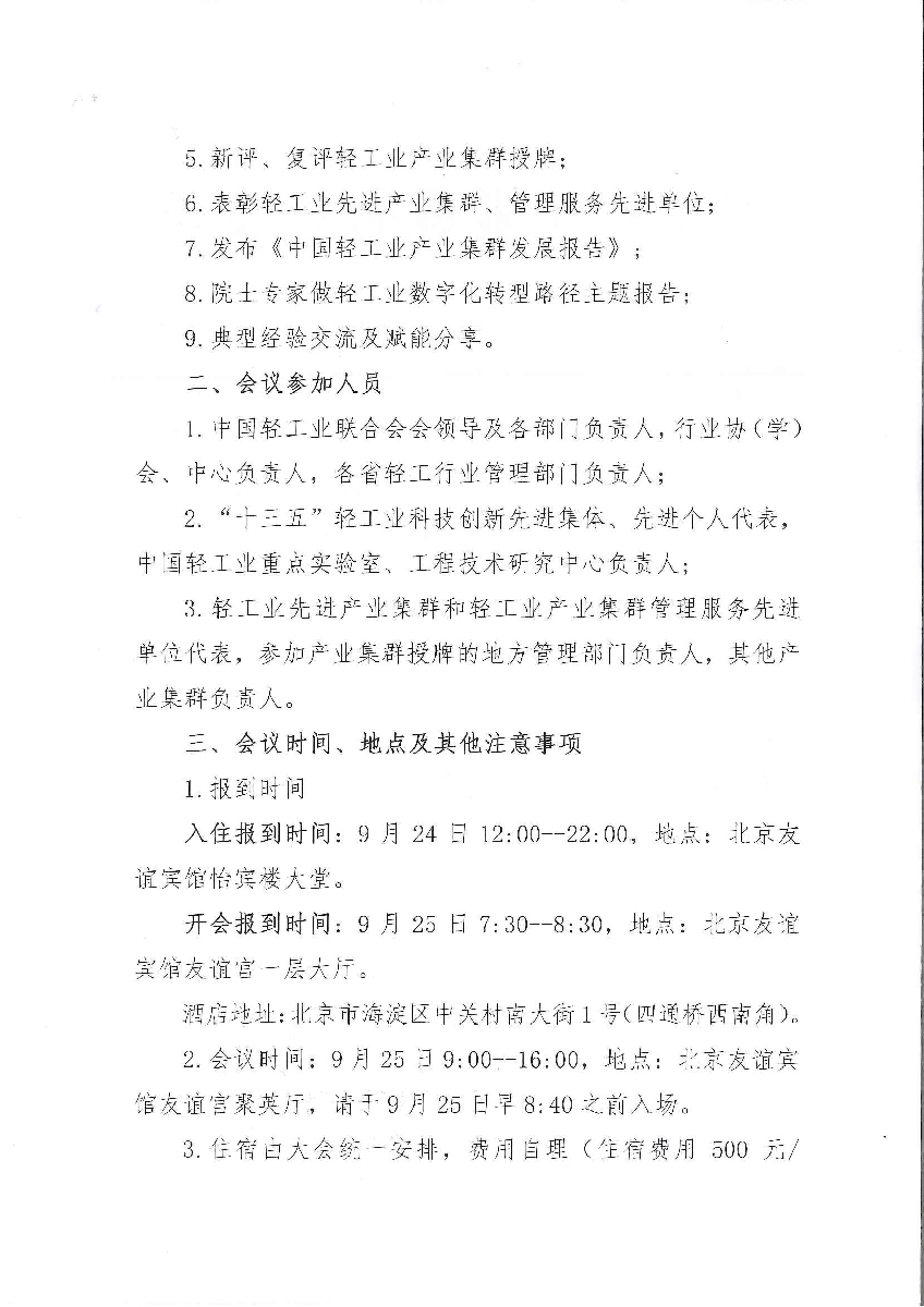 关于召开全国轻工业科技创新与产业发展大会的通知