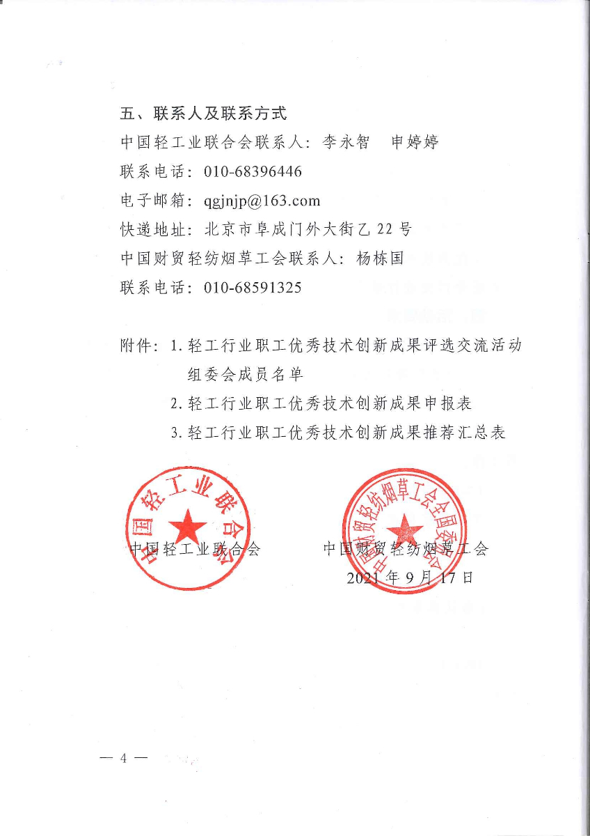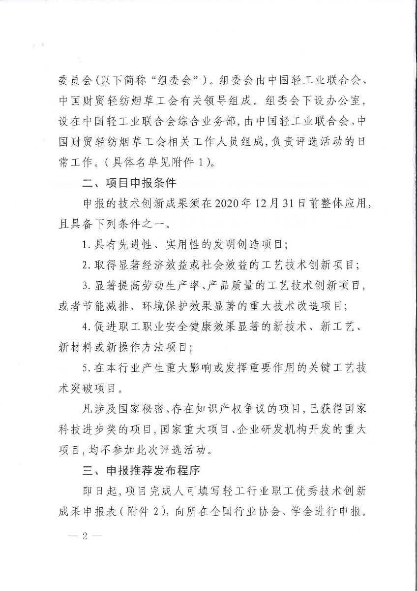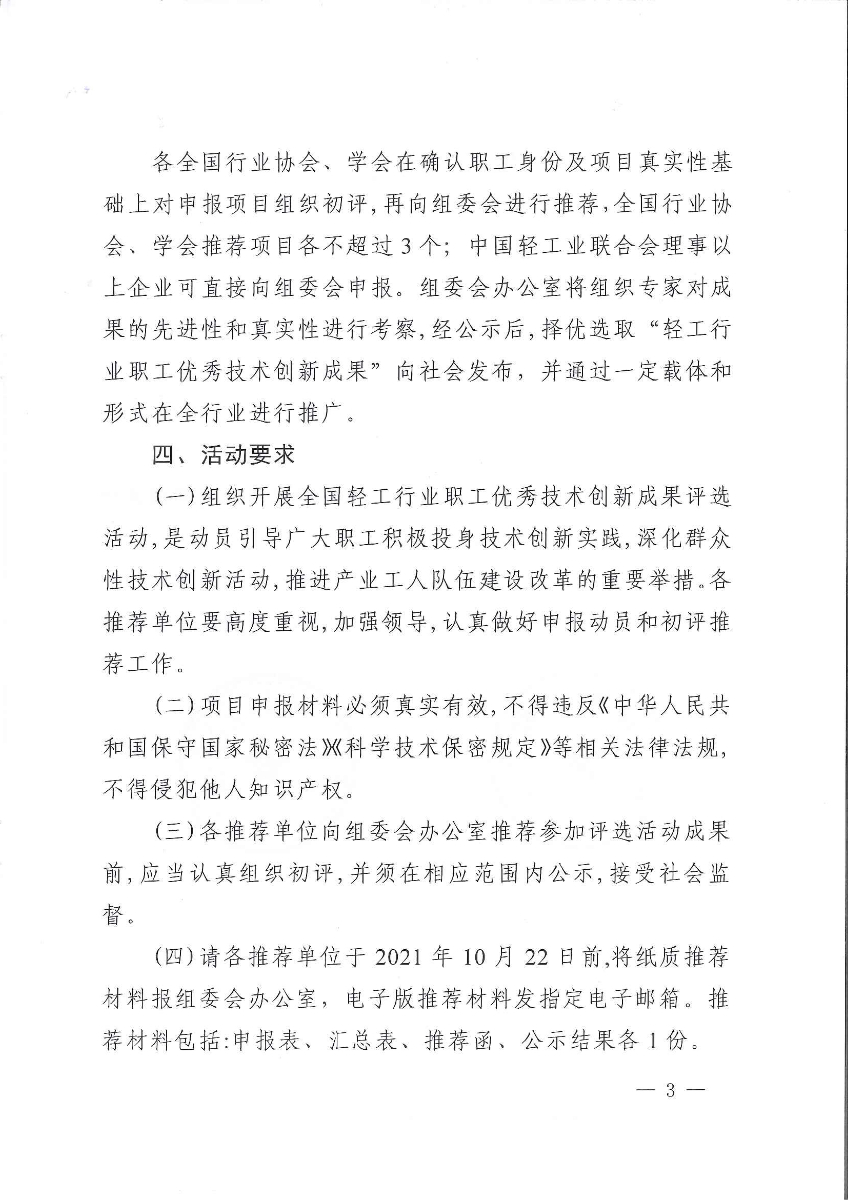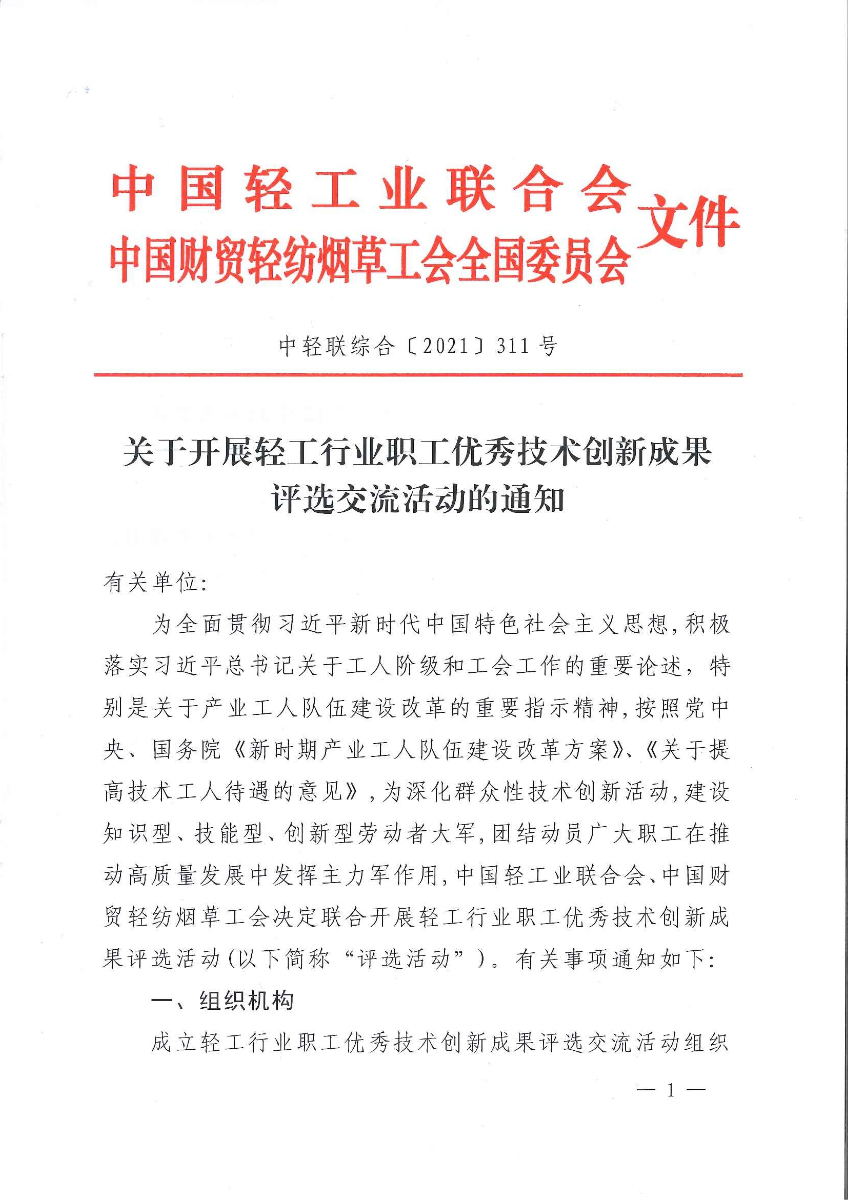 关于开展轻工行业职工优秀技术创新成果评选交流活动的通知