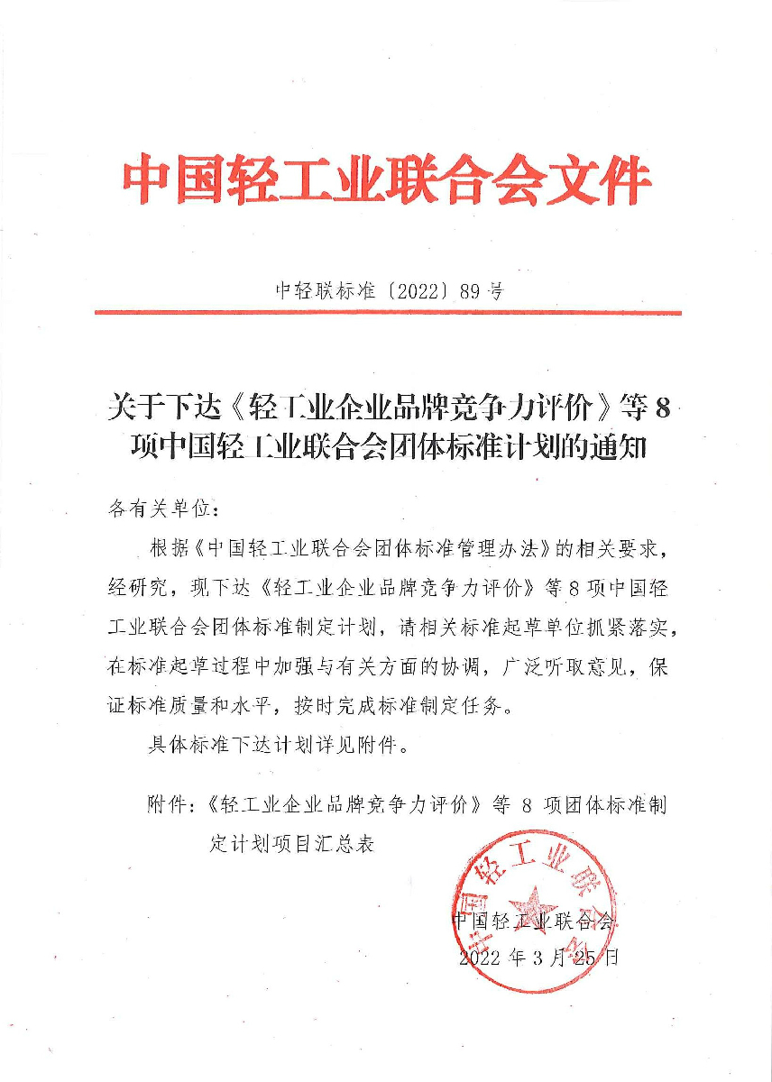 关于下达《轻工业企业品牌竞争力评价》等8项bv伟德国际体育1946团体标准计划的通知