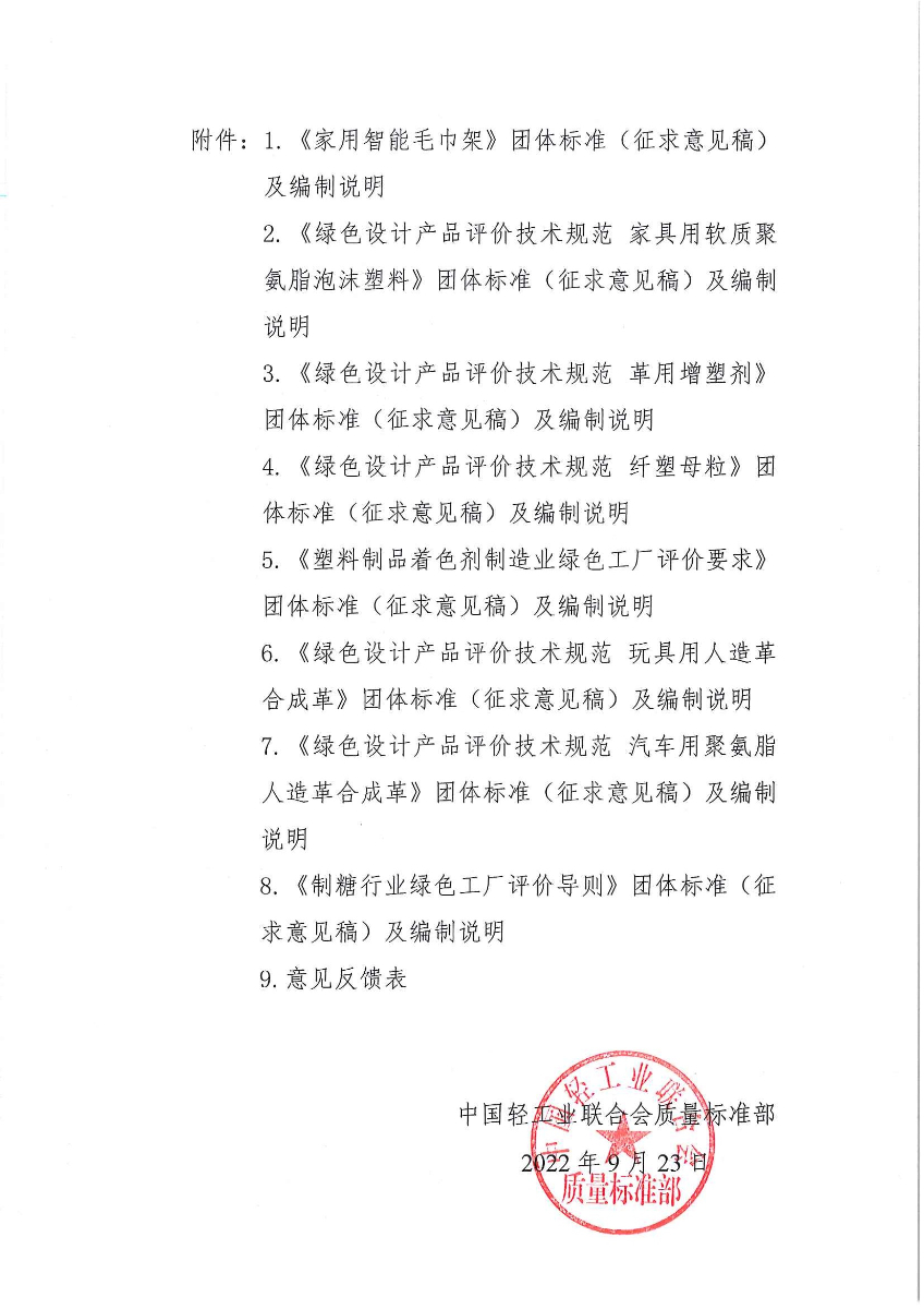 | 9、 | 《塑料制品着色剂制造业 绿色工厂评价要求》团体标准(征求意见稿) |