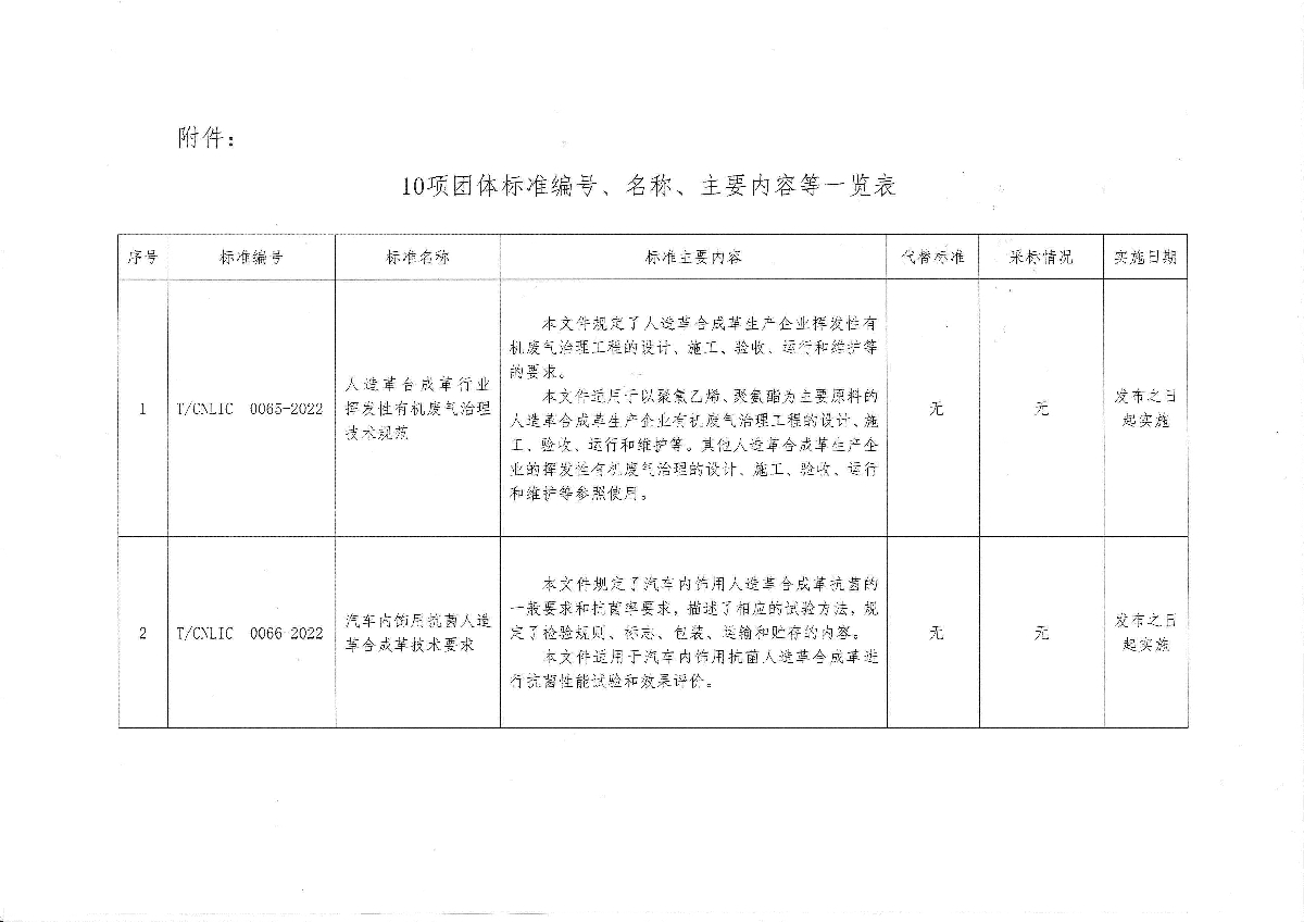 关于批准发布《人造革合成革行业 挥发性有机废气治理技术规范》等10项团体标准的公告