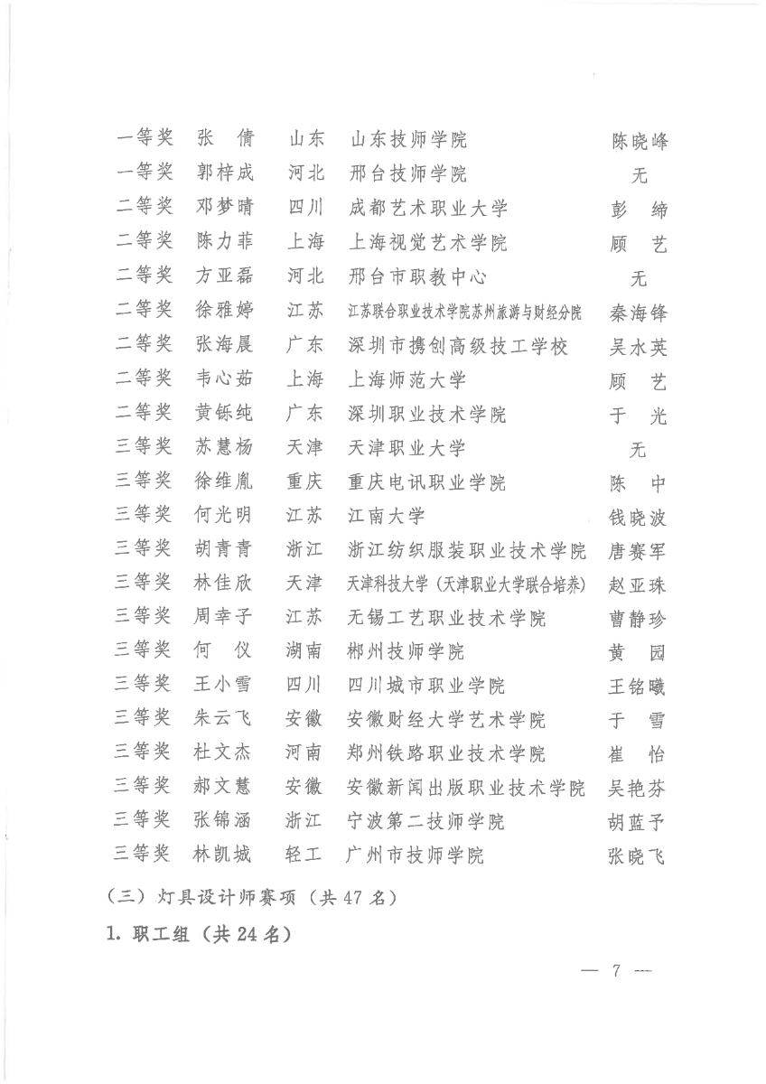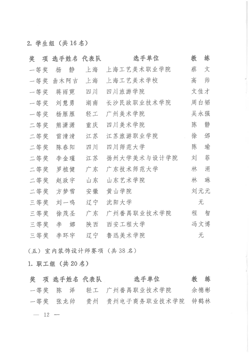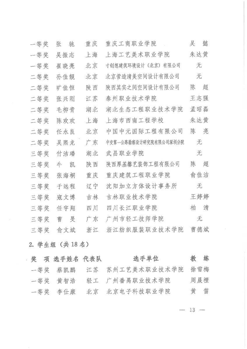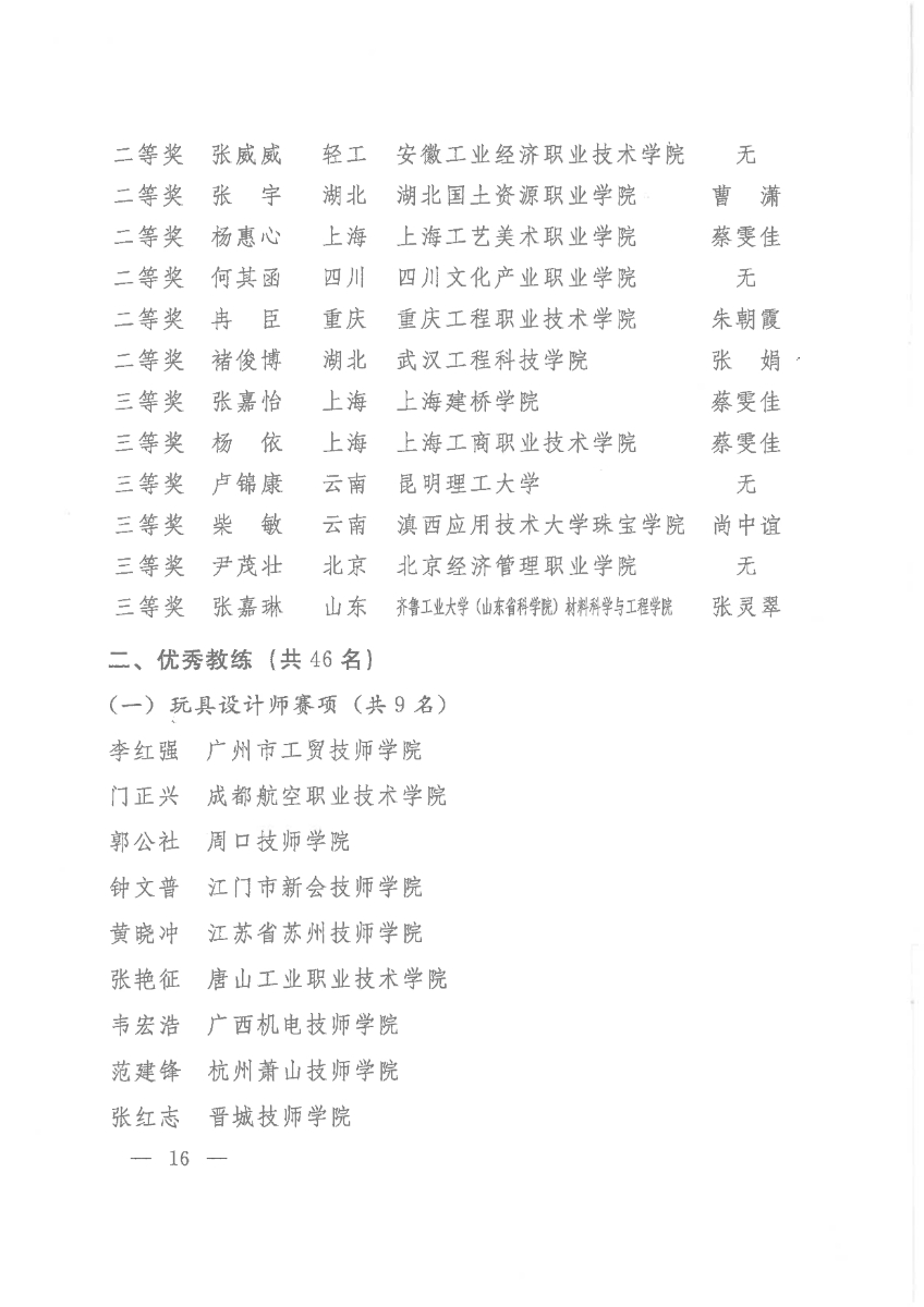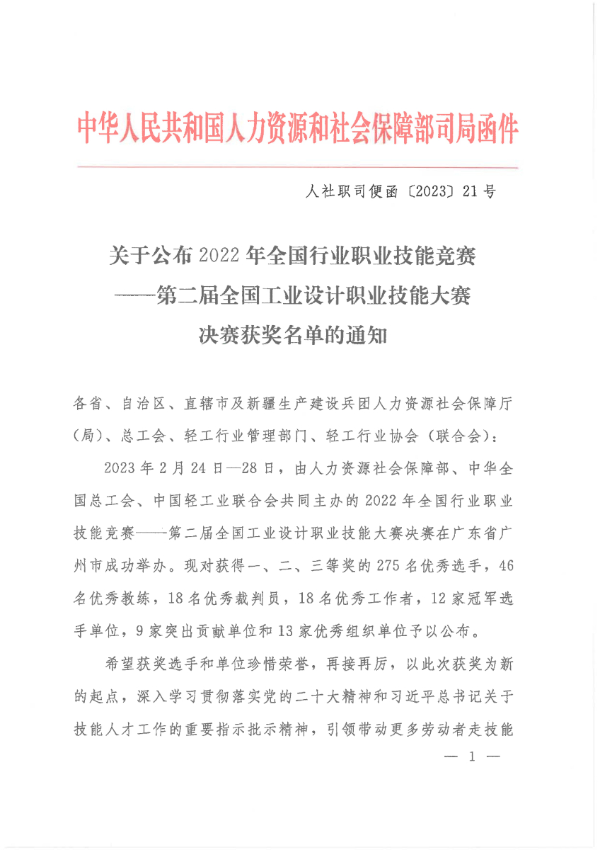 关于公布第二届全国工业设计职业技能大赛决赛获奖名单的通知