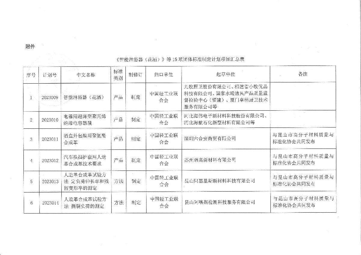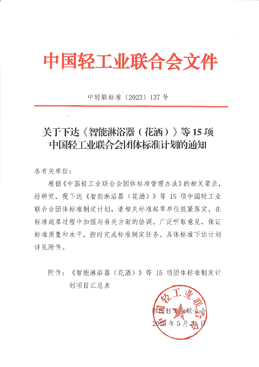 关于下达《智能淋浴器(花洒)》等15项bv伟德国际体育1946团体标准计划的通知