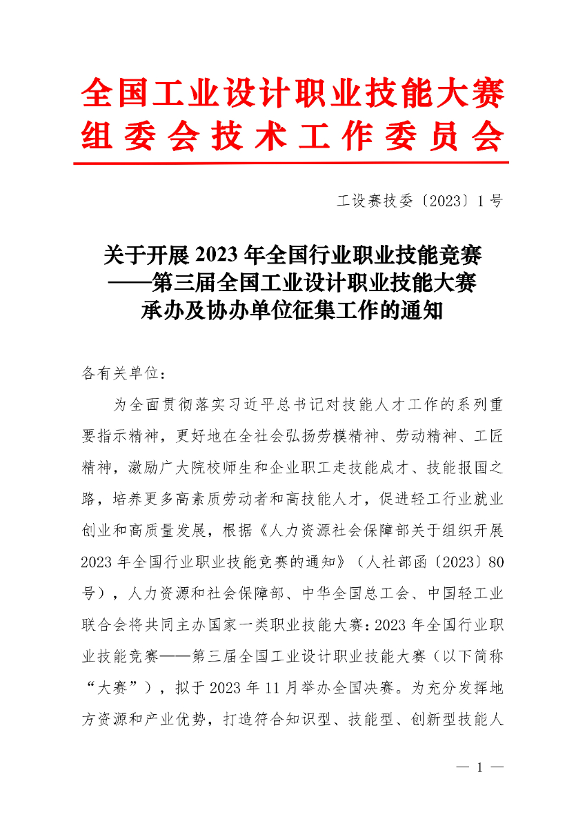 关于开展第三届全国工业设计职业技能大赛承办及协办单位征集工作的通知