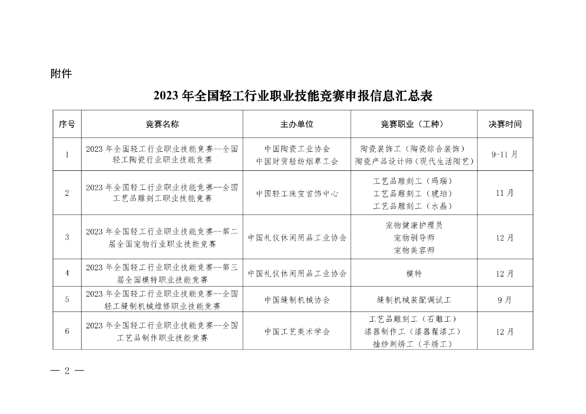 关于同意举办2023年全国轻工行业职业技能竞赛的批复